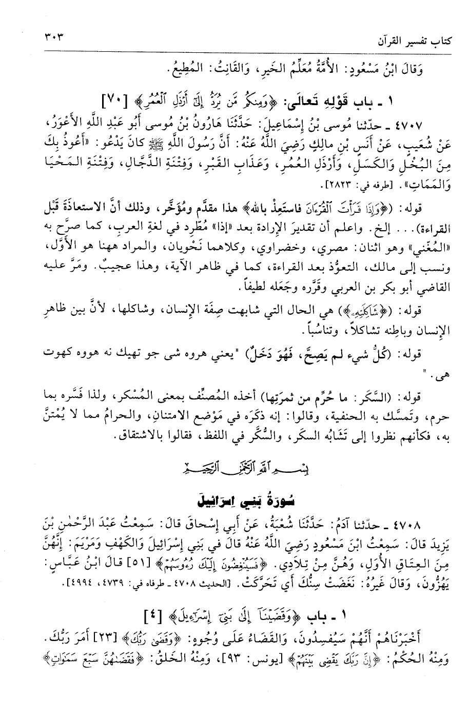4707 - حَدَّثَنَا مُوسَى بْنُ إِسْمَاعِيلَ حَدَّثَنَا هَارُونُ بْنُ مُوسَى أَبُو عَبْدِ اللَّهِ الأَعْوَرُ عَنْ شُعَيْبٍ عَنْ أَنَسِ بْنِ مَالِكٍ - رضى الله عنه -. أَنَّ رَسُولَ اللَّهِ - صلى الله عليه وسلم - كَانَ يَدْعُو «أَعُوذُ بِكَ مِنَ الْبُخْلِ وَالْكَسَلِ، وَأَرْذَلِ الْعُمُرِ، وَعَذَابِ الْقَبْرِ، وَفِتْنَةِ الدَّجَّالِ، وَفِتْنَةِ الْمَحْيَا وَالْمَمَاتِ». أطرافه 2823، 6367، 6371 - تحفة 913