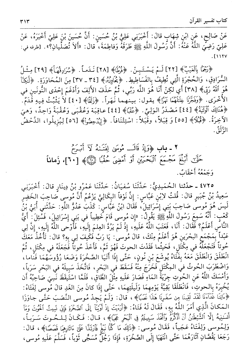 2 - باب {وَإِذْ قَالَ مُوسَى لِفَتَاهُ لَا أَبْرَحُ حَتَّى أَبْلُغَ مَجْمَعَ الْبَحْرَيْنِ أَوْ أَمْضِيَ حُقُبًا (60)} [الكهف: 60]