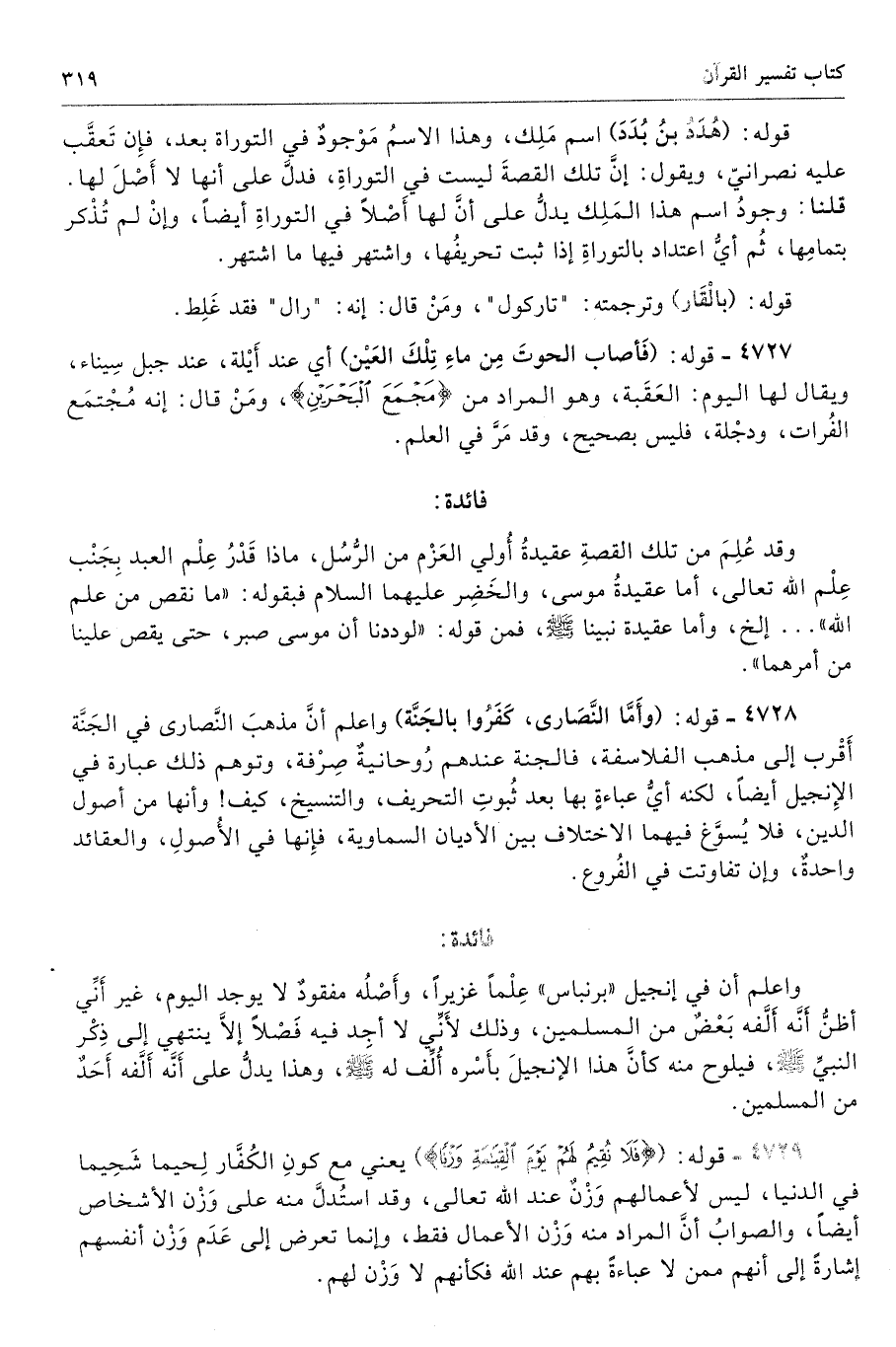 4728 - قوله: (وأَمَّا النَّصَارى، كَفَرُوا بالجَنَّة) واعلم أنَّ مذهبَ النَّصارى في الجَنَّة أَقْرب إلى مذهب الفلاسفة، فالجنة عندهم رُوحانيةٌ صِرْفة، وتوهم ذلك عبارة في الإِنجيل أيضًا، لكنه أيُّ عباءةٍ بها بعد ثُبوتِ التحريف، والتنسيخ، كيف! وأنها من أصول الدين، فلا يُسوَّغ فيهما الاختلاغ بين الأديان السماوية، فإِنها في الأُصولِ، والعقائد واحدةٌ، وإن تفاوتت في الفُروع.