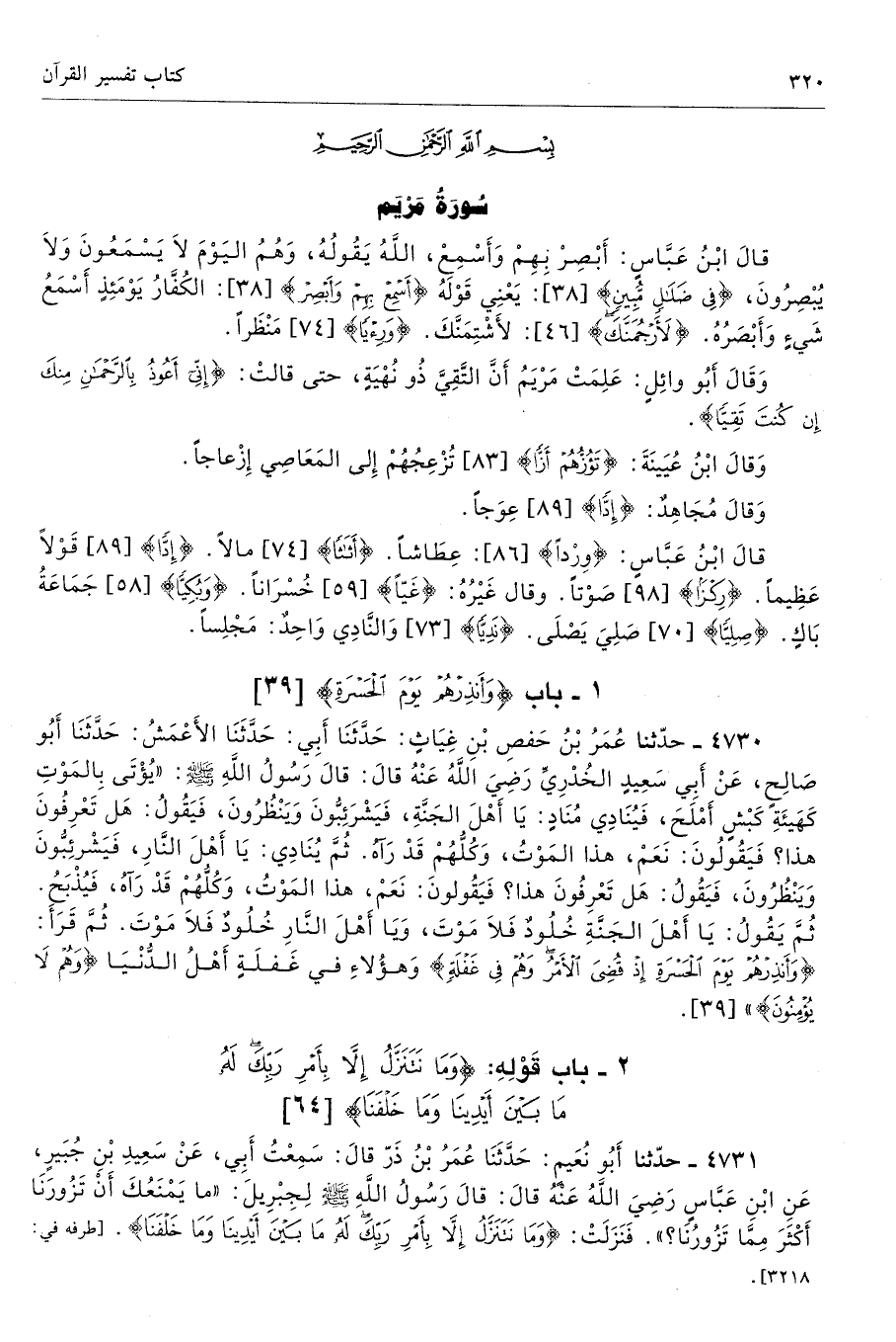 1 - باب قَوْلِهِ: {وَأَنْذِرْهُمْ يَوْمَ الْحَسْرَةِ} [مريم: 39]