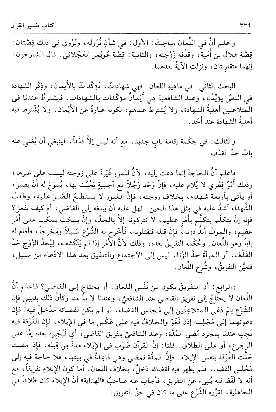 واعلم أنَّ في اللِّعان مباحِثَ: الأول: في شأنِ نُزُوله، ويُرْوى في ذلك قِصَّتان: قِصَّة هلال بن أُمَية، وقُذْفه زَوْجَته؛ والثانية: قِصَّة عُويْمر العَجْلاني. قال الشارحون: إنهما متقارِبتان، ونزلت الآيةُ بعدهما.