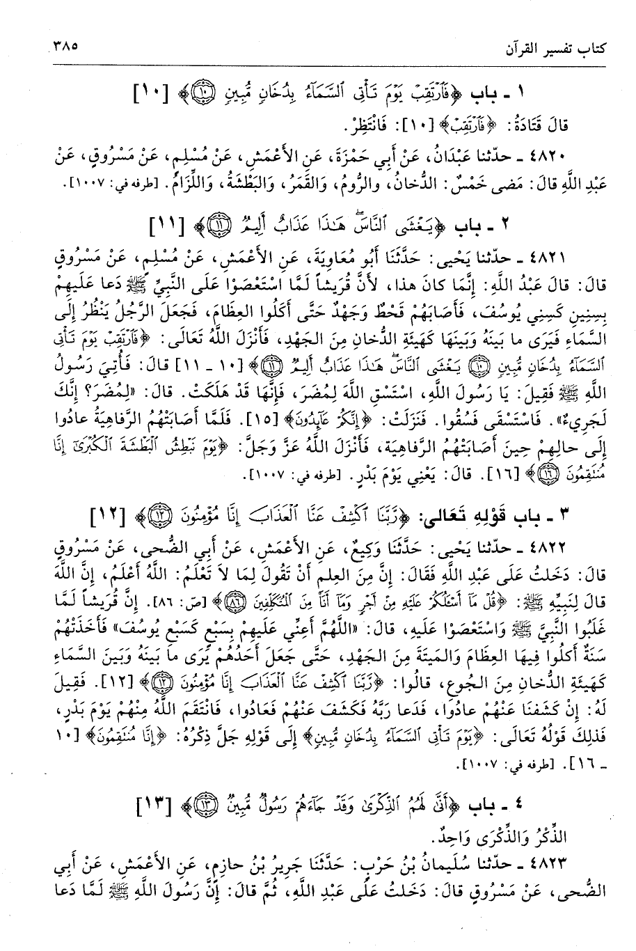 1 - باب {فَارْتَقِبْ يَوْمَ تَأْتِي السَّمَاءُ بِدُخَانٍ مُبِينٍ (10)} [الدخان: 10]
