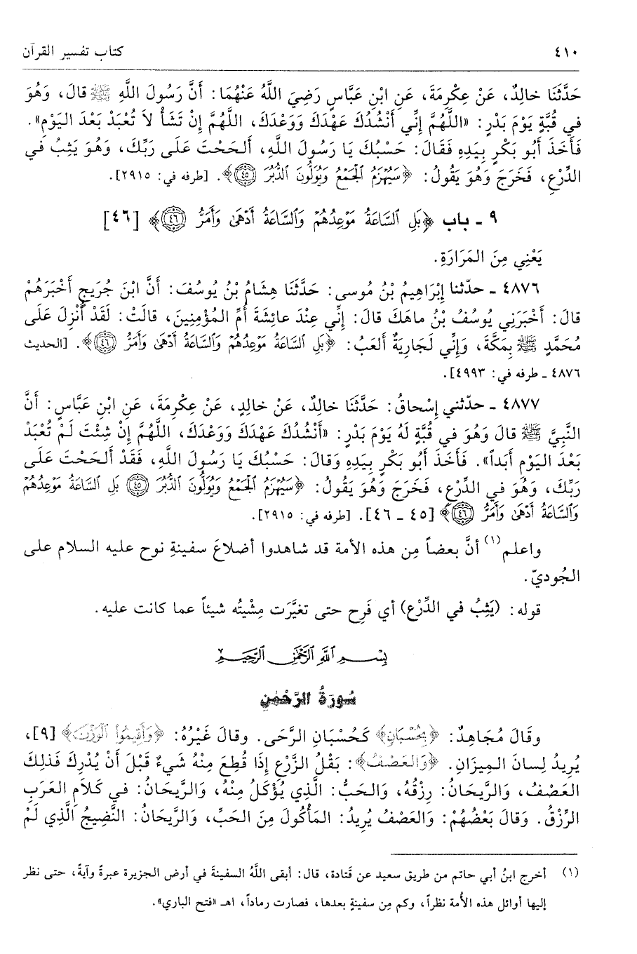 وَقَالَ مُجَاهِدٌ: {بِحُسْبَانٍ} كحُسْبَان الرحى. وَقَالَ غَيْرُهُ: {وَأَقِيمُوا الْوَزْنَ} [9]، يُرِيدُ لِسَانَ الْمِيزَانِ. {وَالْعَصْفُ}: بَقْلُ الزَّرْعِ إِذَا قُطِعَ مِنْهُ شَىْءٌ قَبْلَ أَنْ يُدْرِكَ فَذَلِكَ الْعَصْفُ، وَالرَّيْحَانُ: رِزْقُهُ، وَالْحَبُّ: الَّذِى يُؤْكَلُ مِنْهُ، وَالرَّيْحَانُ: فِي كَلاَمِ الْعَرَبِ الرِّزْقُ. وَقَالَ بَعْضُهُمْ: وَالْعَصْفُ يُرِيدُ: الْمَأْكُولَ مِنَ الْحَبِّ، وَالرَّيْحَانُ: النَّضِيجُ الَّذِى لَمْ