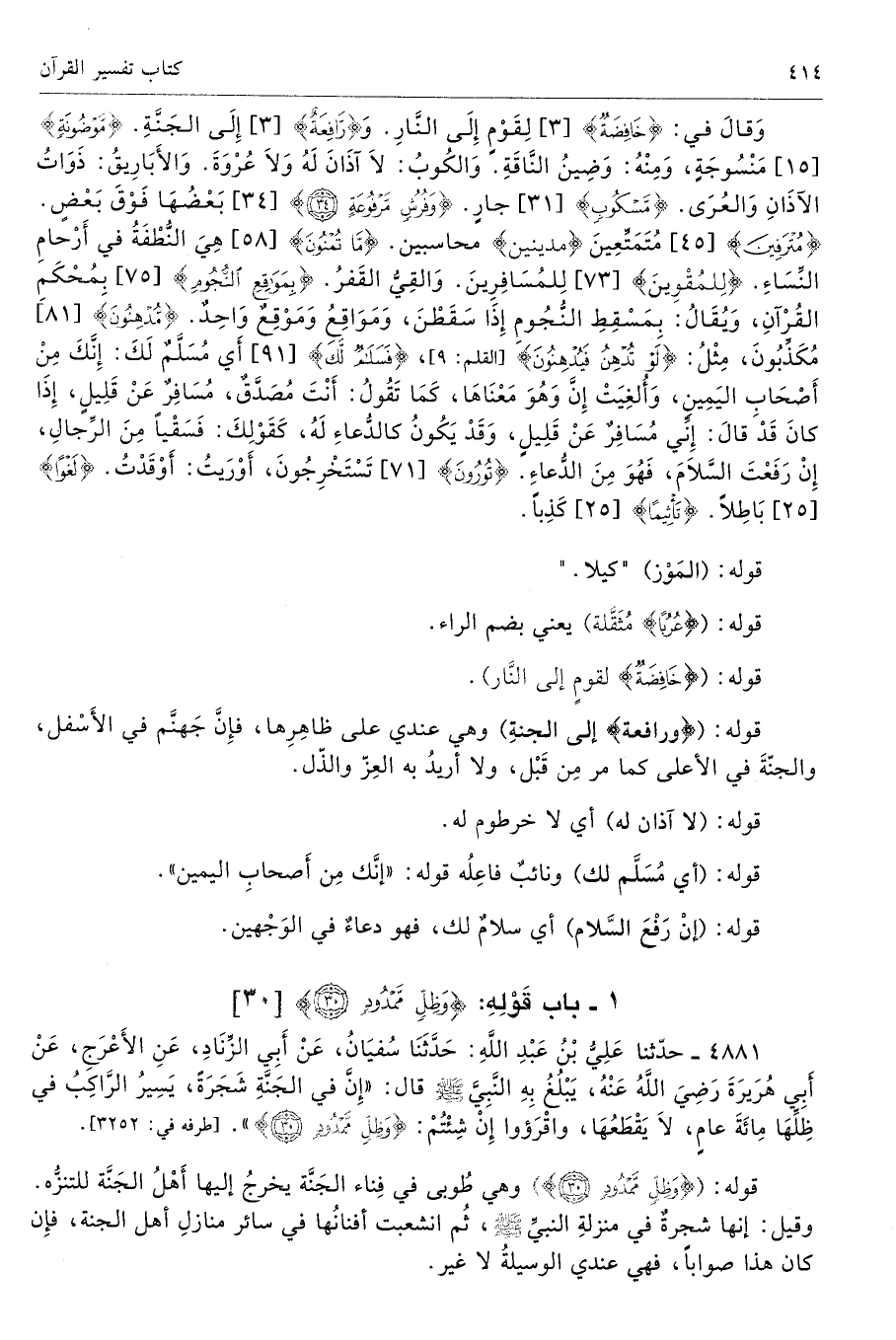 1 - باب قَوْلِهِ: {وَظِلٍّ مَمْدُودٍ (30)} [الواقعة: 30]