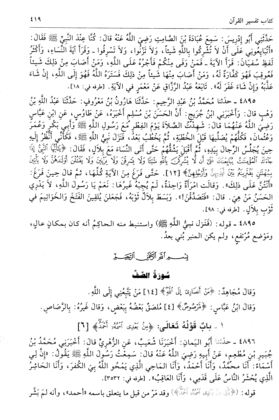 1 - باب قَوْلُهُ تَعَالَى: {مِنْ بَعْدِي اسْمُهُ أَحْمَدُ} [الصف: 6]