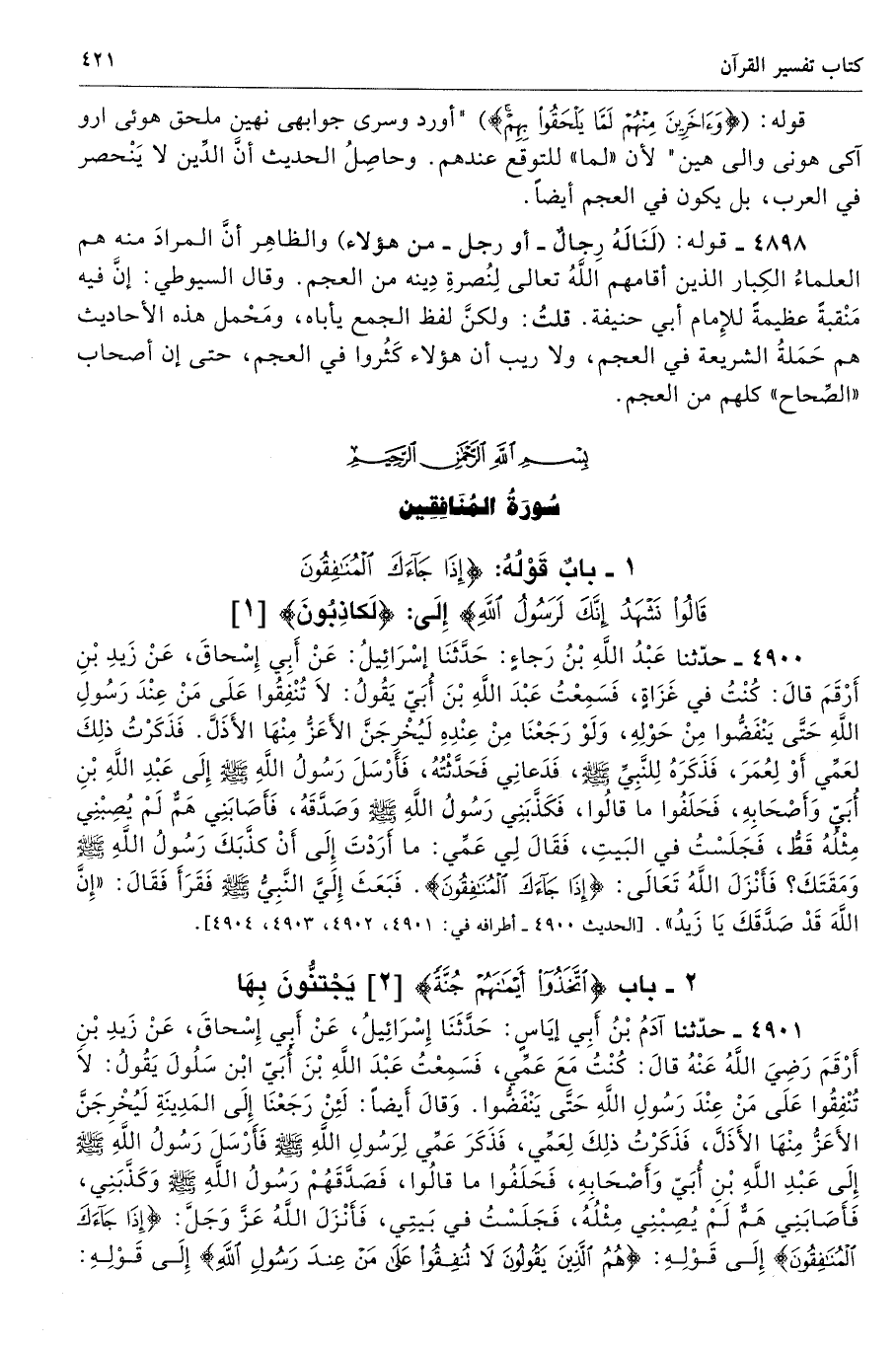 1 - باب قَوْلِهِ: {إِذَا جَاءَكَ الْمُنَافِقُونَ قَالُوا نَشْهَدُ إِنَّكَ لَرَسُولُ اللَّهِ} إِلَى: {لَكَاذِبُونَ} [المنافقون: 1]