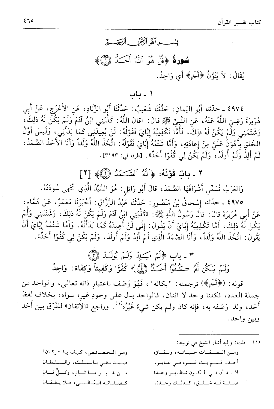 3 - باب {لَمْ يَلِدْ وَلَمْ يُولَدْ (3) وَلَمْ يَكُنْ لَهُ كُفُوًا أَحَدٌ (4)} كُفُؤًا وَكَفِيئًا وَكِفَاءً: وَاحِدٌ
