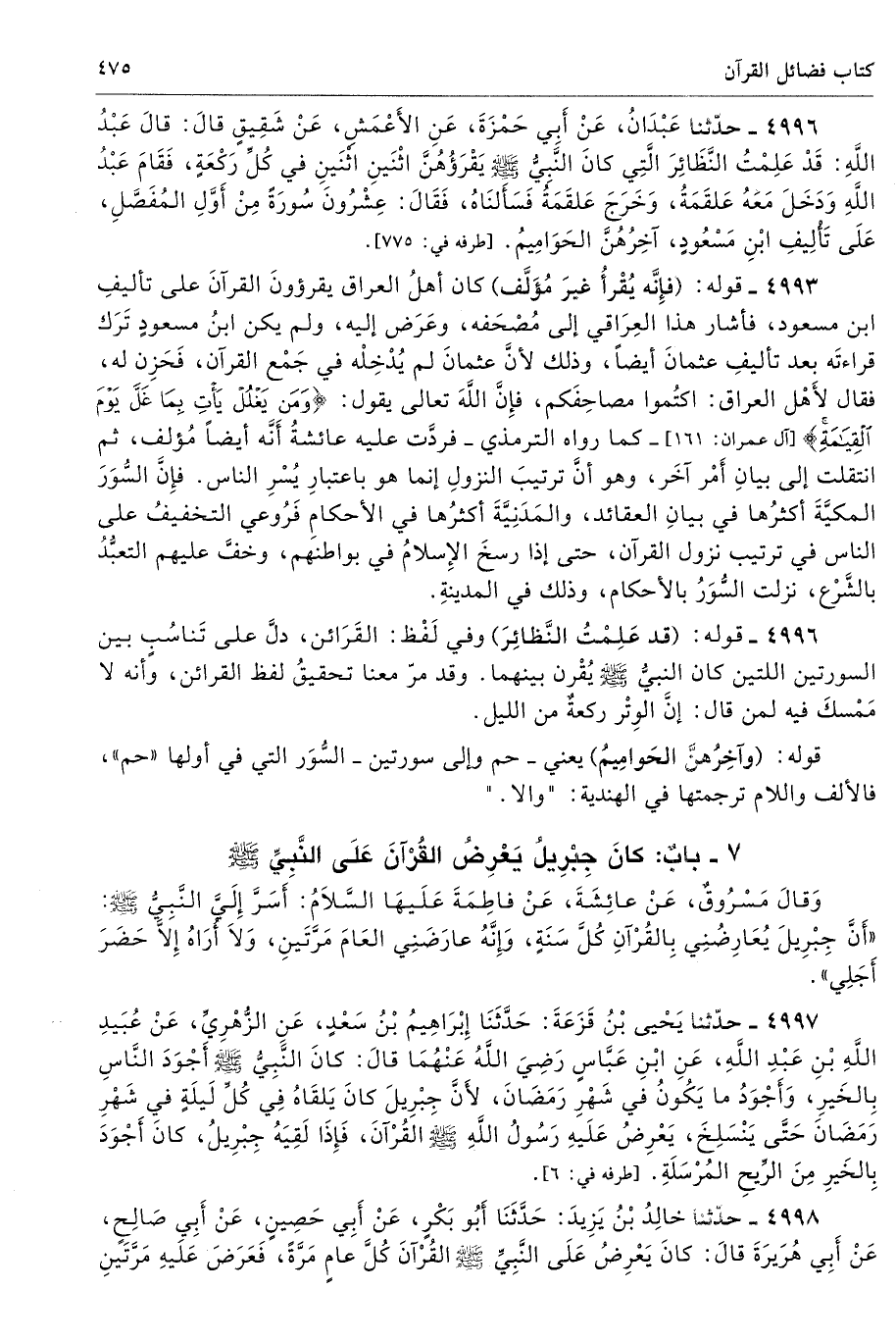 7 - باب: كَانَ جِبْرِيلُ يَعْرِضُ الْقُرْآنَ عَلَى النَّبِىِّ - صلى الله عليه وسلم -