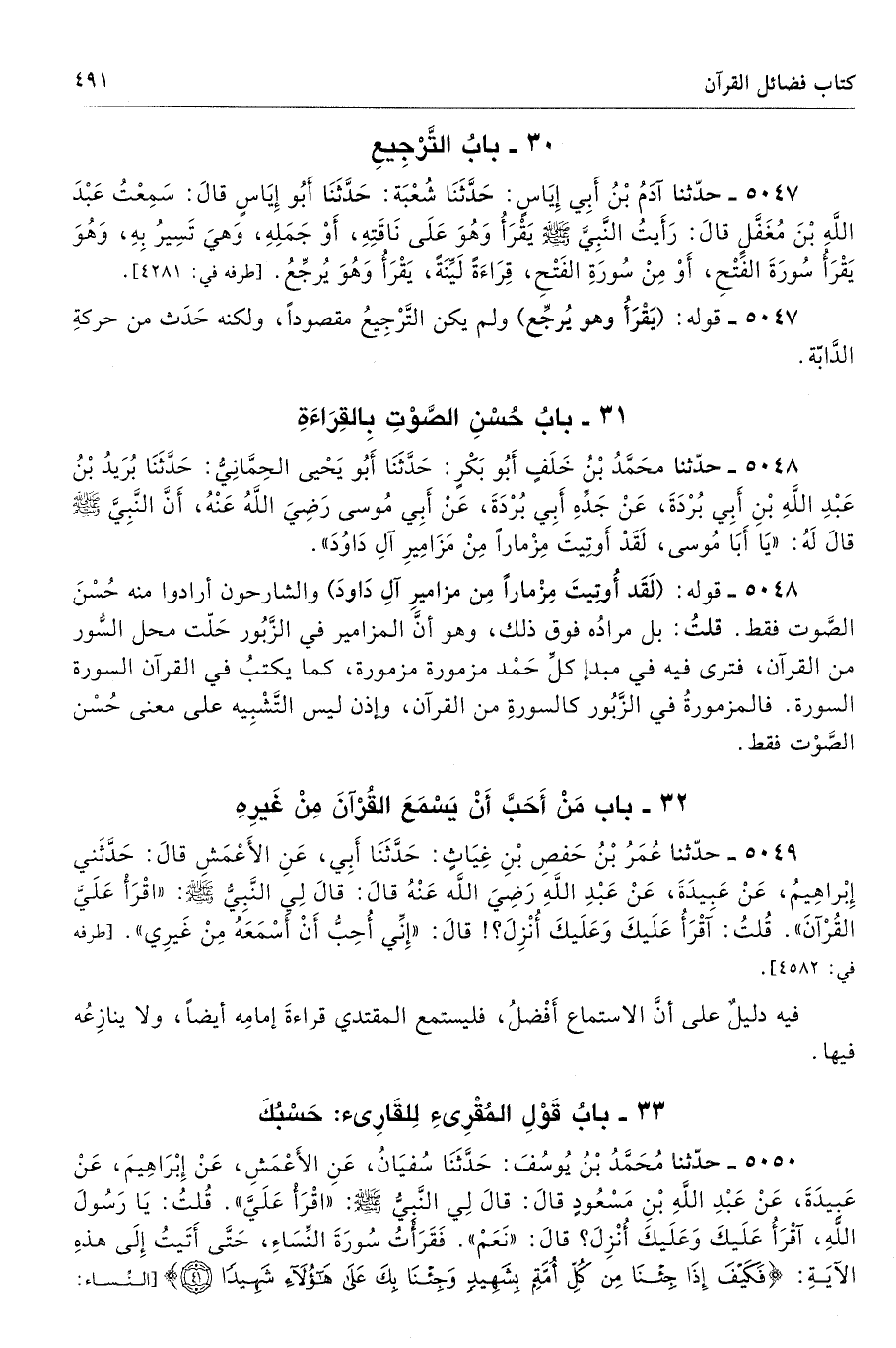 31 - باب حُسْنِ الصَّوْتِ بِالْقِرَاءَةِ