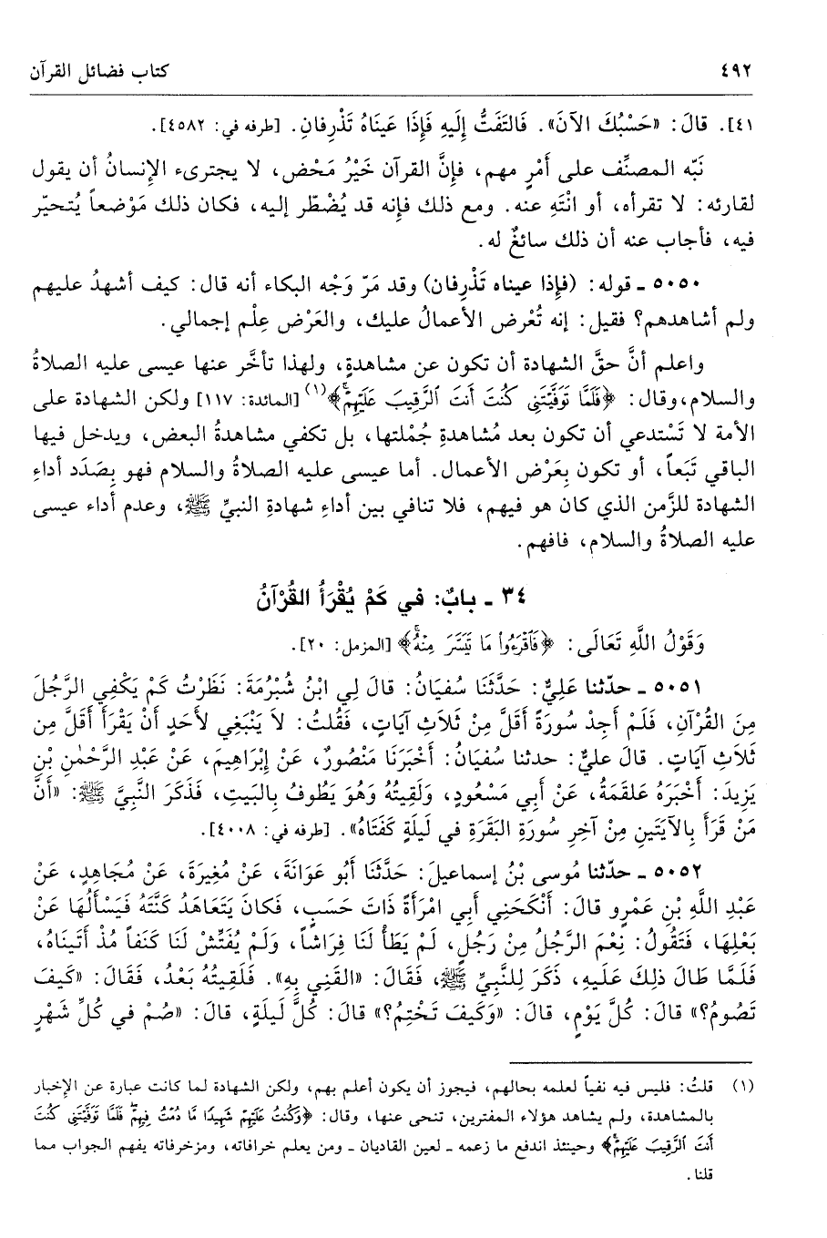 41] قَالَ «حَسْبُكَ الآنَ». فَالْتَفَتُّ إِلَيْهِ فَإِذَا عَيْنَاهُ تَذْرِفَانِ. أطرافه 4582، 5049، 5055، 5056 - تحفة 9402