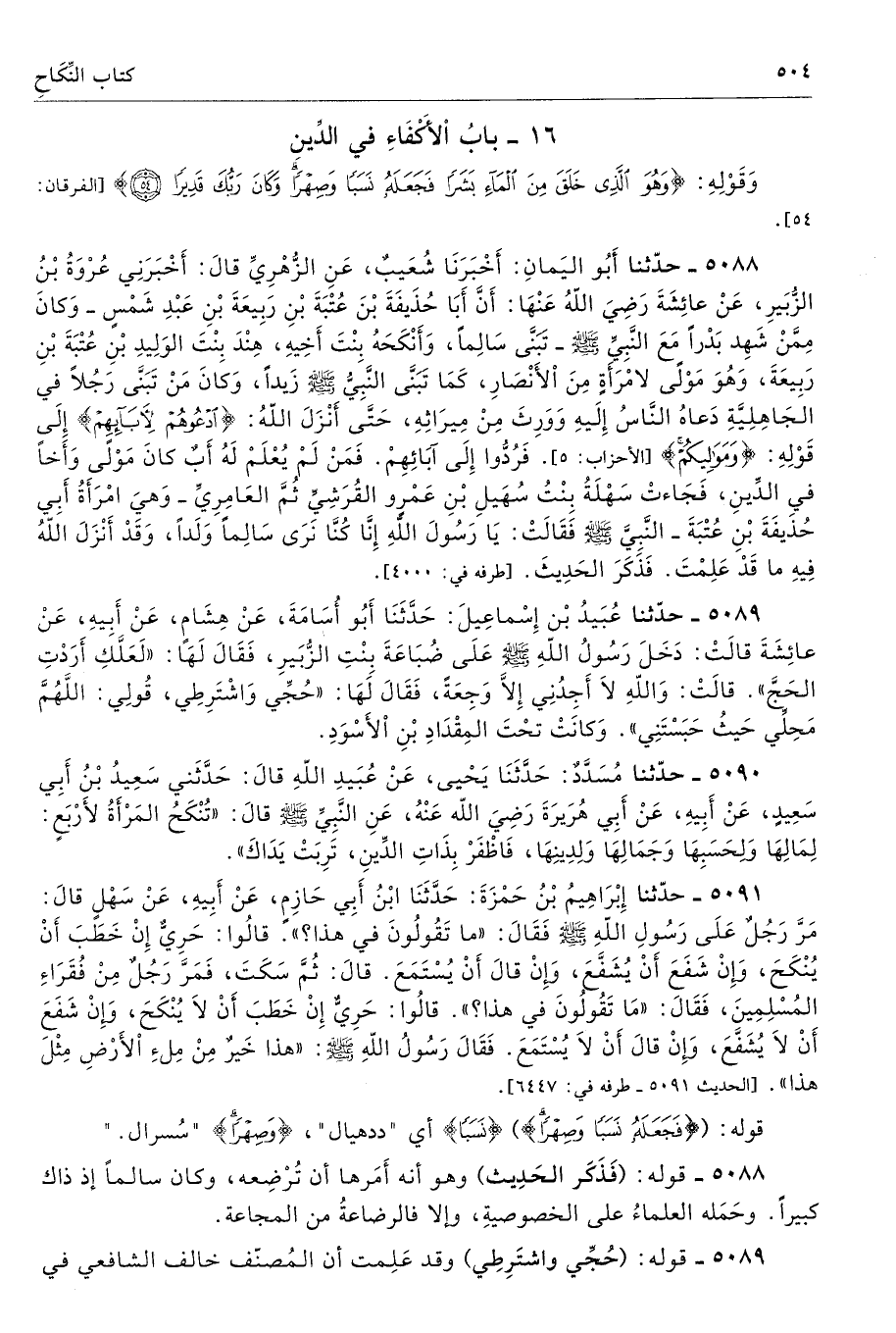 16 - باب الأَكْفَاءِ فِى الدِّينِ