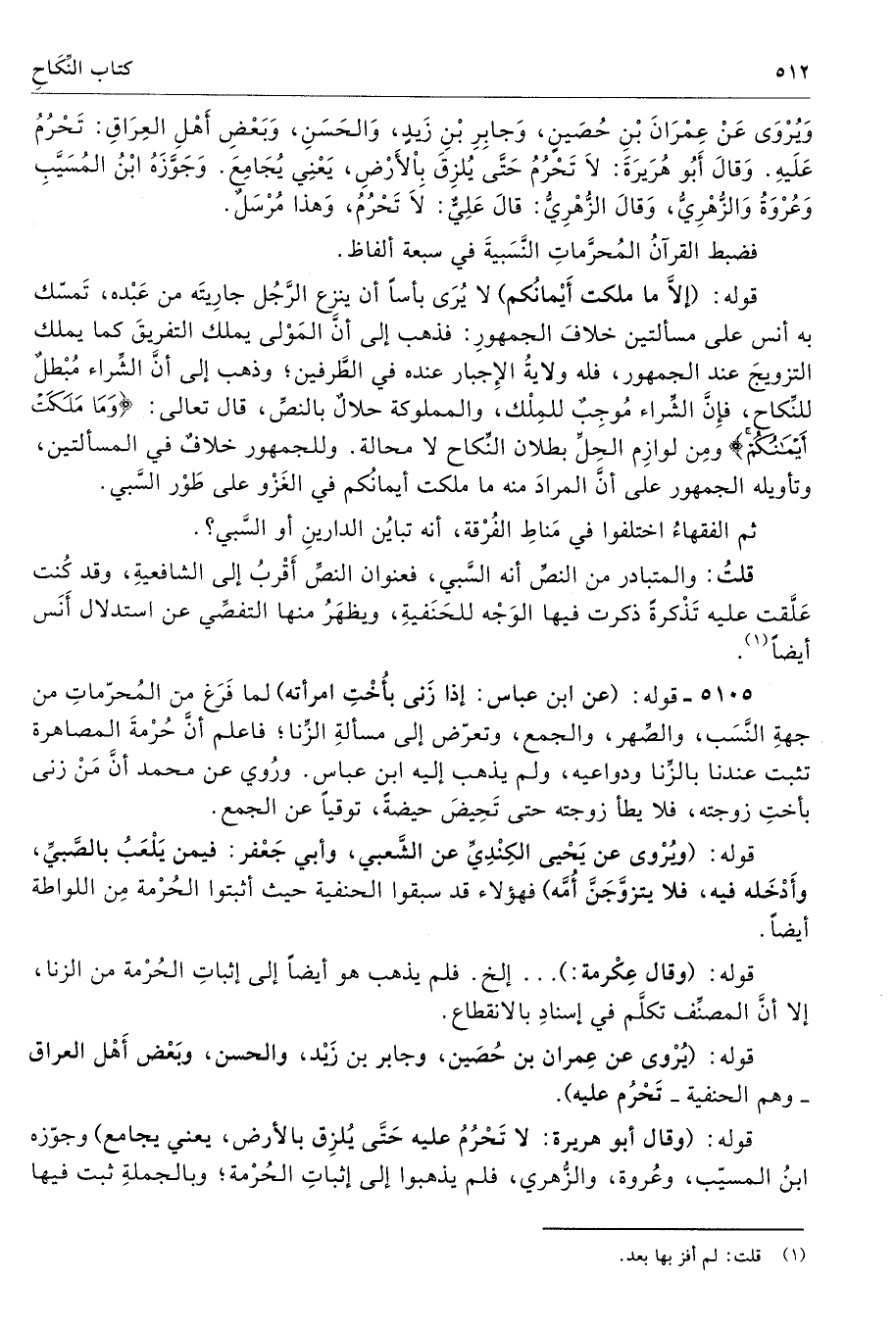 قوله: (يُرْوى عن عِمران بن حُصَين، وجابر بن زَيْد، والحسن، وبَعْض أَهْل العراق - وهم الحنفية تَحْرُم عليه).