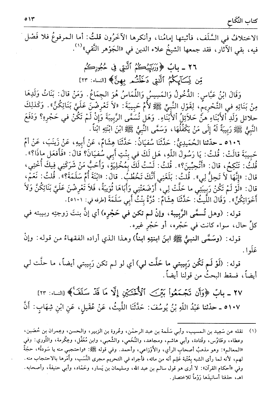 26 - باب {وَرَبَائِبُكُمُ اللَّاتِي فِي حُجُورِكُمْ مِنْ نِسَائِكُمُ اللَّاتِي دَخَلْتُمْ بِهِنَّ} [النساء: 23]