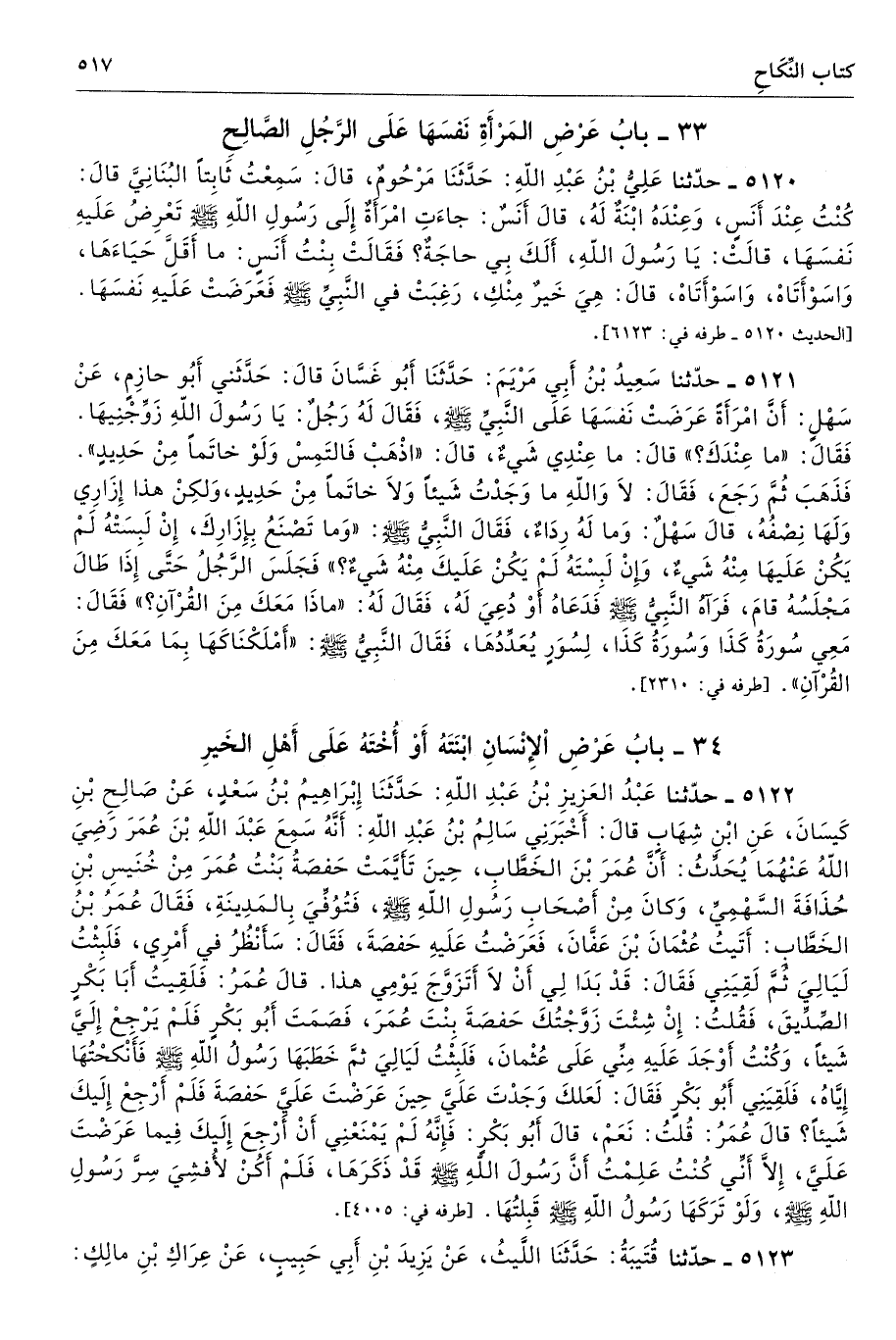 34 - باب عَرْضِ الإِنْسَانِ ابْنَتَهُ أَوْ أُخْتَهُ عَلَى أَهْلِ الْخَيْرِ