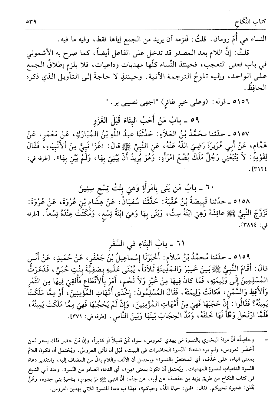 5157 - حَدَّثَنَا مُحَمَّدُ بْنُ الْعَلاَءِ حَدَّثَنَا ابْنُ الْمُبَارَكِ عَنْ مَعْمَرٍ عَنْ هَمَّامٍ عَنْ أَبِى هُرَيْرَةَ - رضى الله عنه - عَنِ النَّبِىِّ - صلى الله عليه وسلم - قَالَ «غَزَا نَبِىٌّ مِنَ الأَنْبِيَاءِ فَقَالَ لِقَوْمِهِ لاَ يَتْبَعْنِى رَجُلٌ مَلَكَ بُضْعَ امْرَأَةٍ وَهْوَ يُرِيدُ أَنْ يَبْنِىَ بِهَا وَلَمْ يَبْنِ بِهَا». طرفه 3124 - تحفة 14677