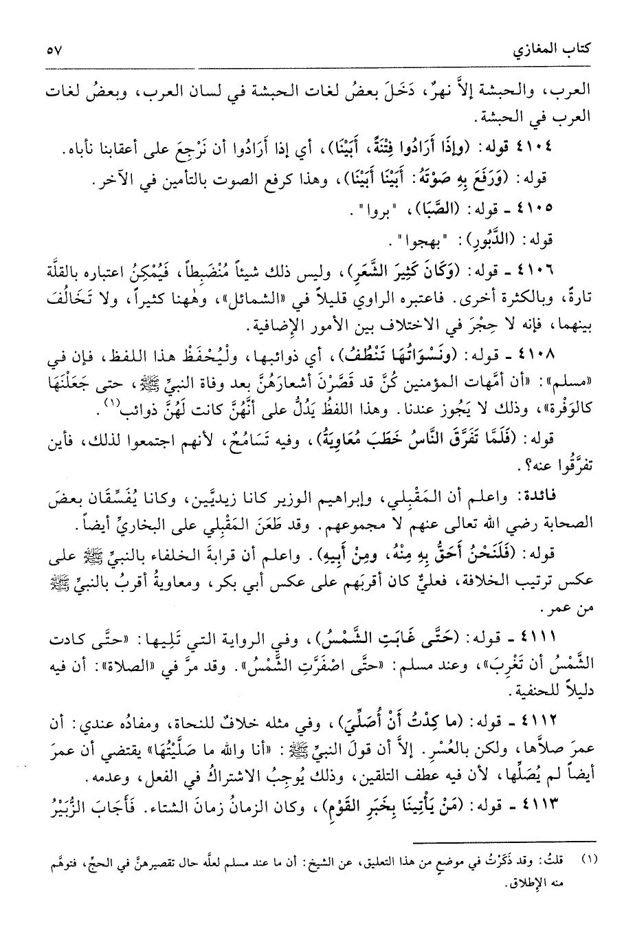 4108 - قوله: (ونَسْوَاتُهَا تَنْطُفُ)، أي ذوائبها، ولْيُحْفَظْ هذا اللفظ، فإن في «مسلم»: «أن أمَّهات المؤمنين كُنَّ قد قَصَّرْنَ أشعارَهُنَّ بعد وفاة النبيِّ صلى الله عليه وسلّم حتى جَعَلْنَهَا كالوَفْرة»، وذلك لا يَجُوز عندنا. وهذا اللفظُ يَدُلُّ على أنَّهُنَّ كانت لَهُنَّ ذوائب (¬1).