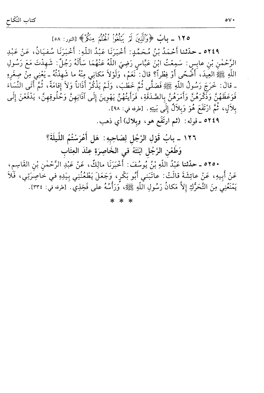 125 - باب {وَالَّذِينَ لَمْ يَبْلُغُوا الْحُلُمَ مِنْكُمْ} [النور: 58]