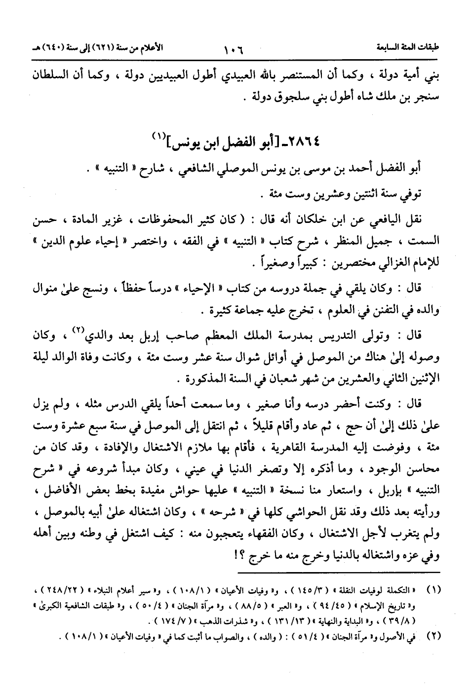 أبو الفضل أحمد بن موسى بن يونس الموصلي الشافعي، شارح «التنبيه».