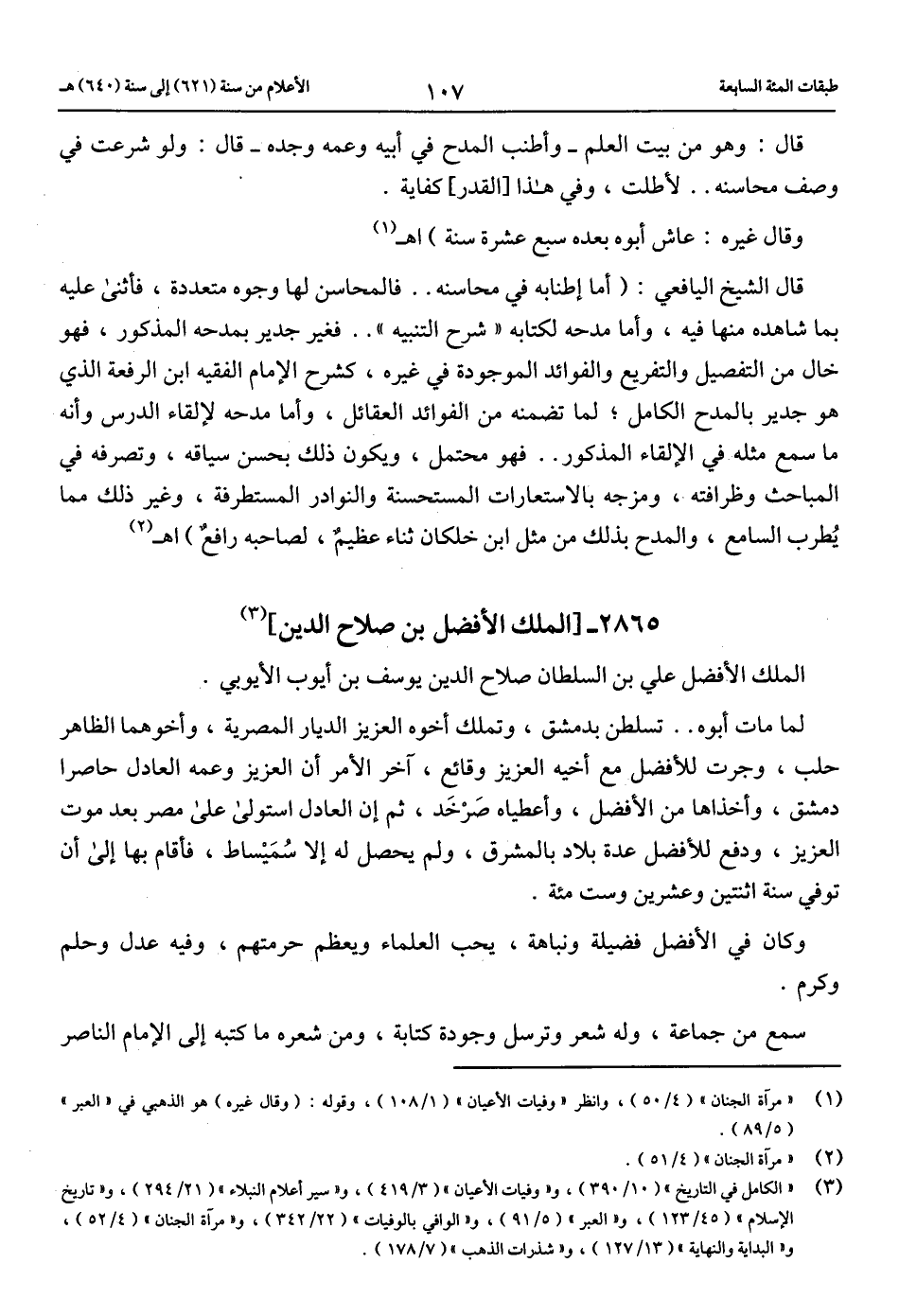 (1) «مرآة الجنان» (4/ 50)، وانظر «وفيات الأعيان» (1/ 108)، وقوله: (وقال غيره) هو الذهبي في «العبر» (5/ 89).