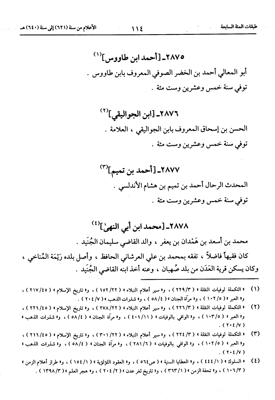 (2) «التكملة لوفيات النقلة» (3/ 226)، و «سير أعلام النبلاء» (22/ 278)، و «تاريخ الإسلام» (45/ 226)، و «العبر» (5/ 103)، و «الوافي بالوفيات» (11/ 401)، و «مرآة الجنان» (4/ 58)، و «شذرات الذهب» (7/ 204).