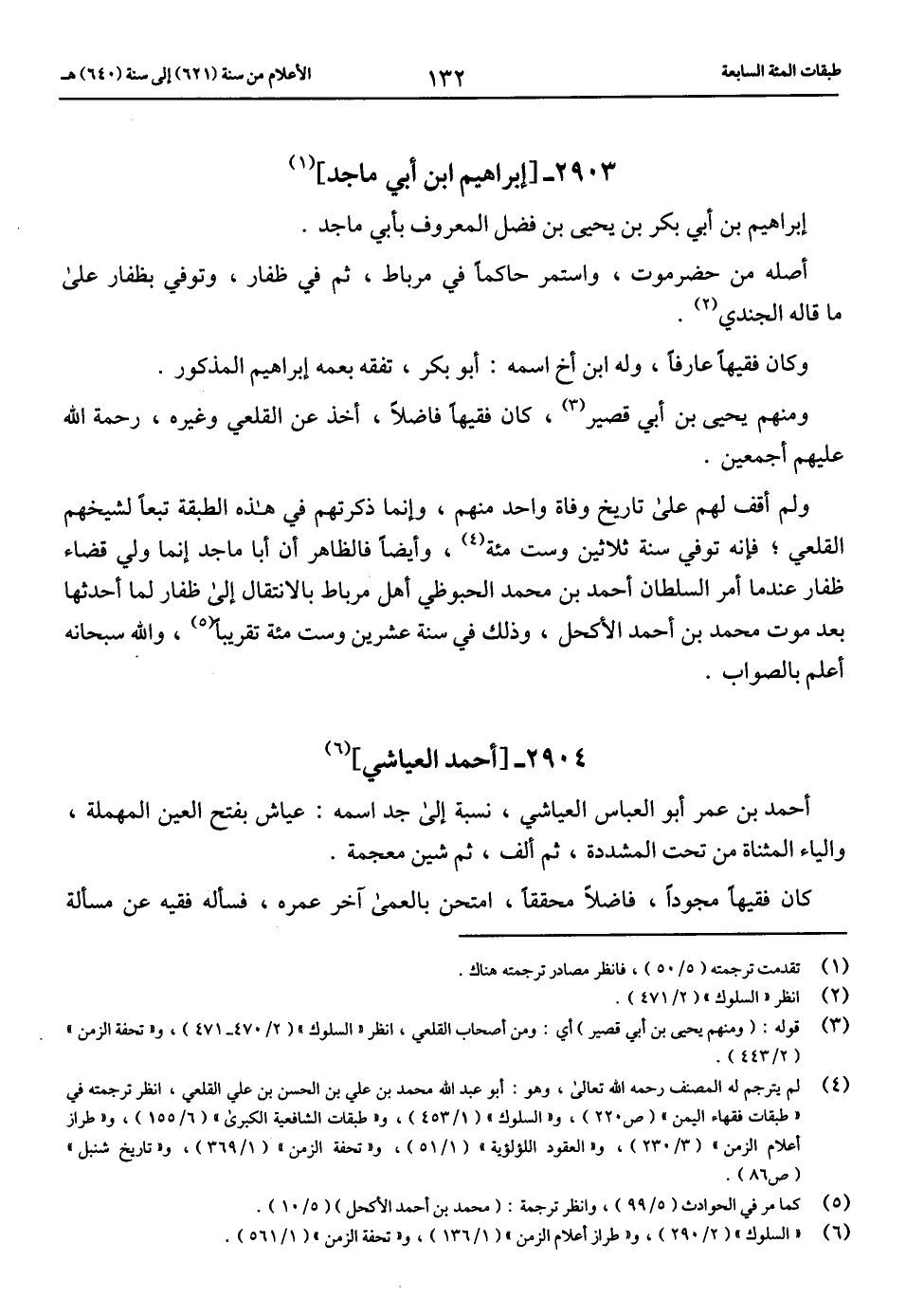 (3) قوله: (ومنهم يحيى بن أبي قصير) أي: ومن أصحاب القلعي، انظر «السلوك» (470/ 2 - 471)، و «تحفة الزمن» (2/ 443).