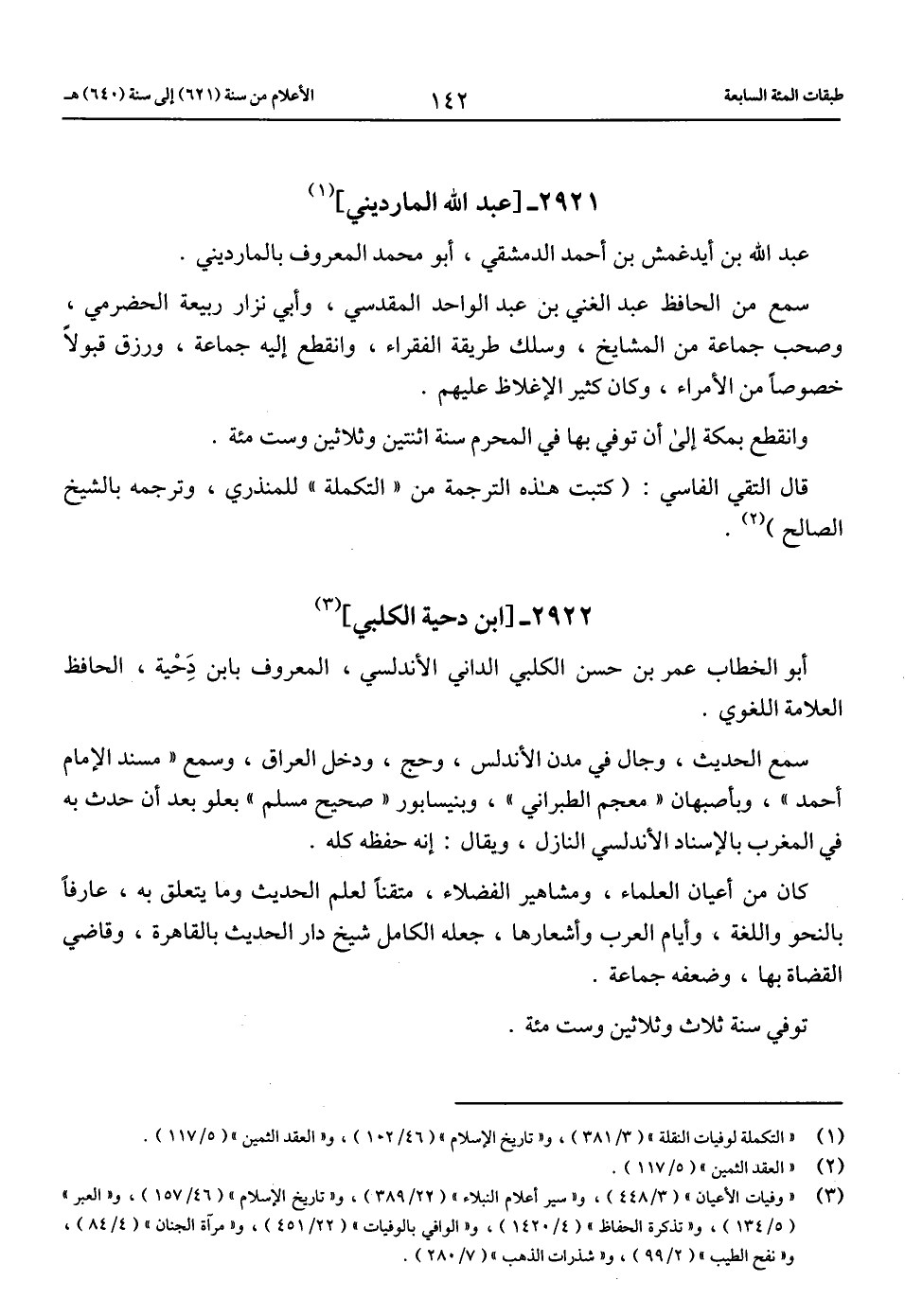 (3) «وفيات الأعيان» (3/ 448)، و «سير أعلام النبلاء» (22/ 389)، و «تاريخ الإسلام» (46/ 157)، و «العبر» (5/ 134)، و «تذكرة الحفاظ» (4/ 1420)، و «الوافي بالوفيات» (22/ 451)، و «مرآة الجنان» (4/ 84)، و «نفح الطيب» (2/ 99)، و «شذرات الذهب» (7/ 280).