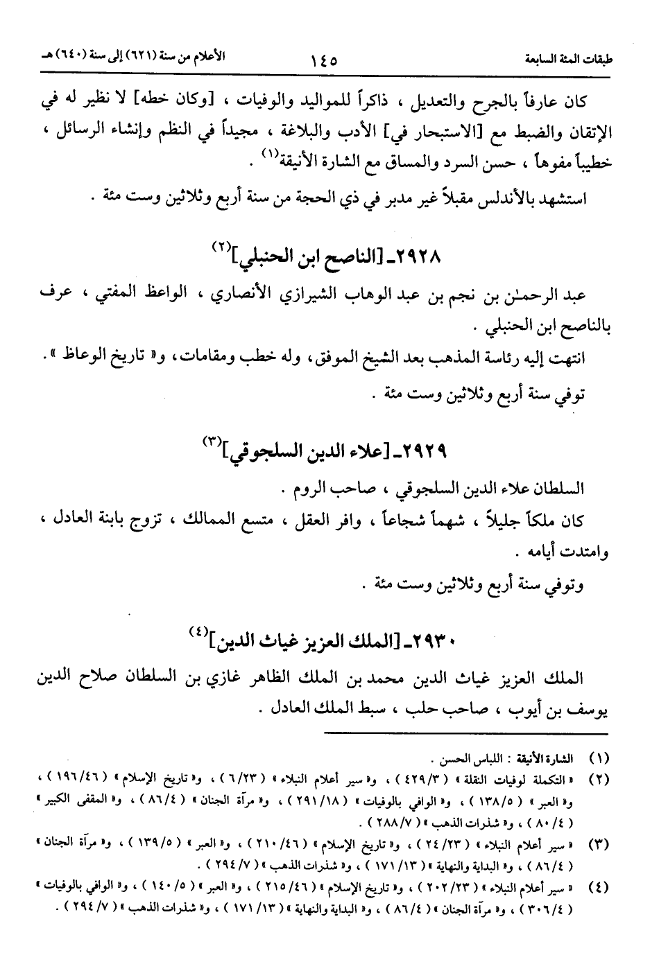 (4) «سير أعلام النبلاء» (23/ 202)، و «تاريخ الإسلام» (46/ 215)، و «العبر» (5/ 140)، و «الوافي بالوفيات» (4/ 306)، و «مرآة الجنان» (4/ 86)، و «البداية والنهاية» (13/ 171)، و «شذرات الذهب» (7/ 294).
