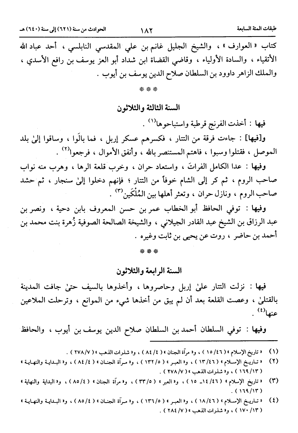 (4) «تاريخ الإسلام» (46/ 18)، و «العبر» (5/ 136)، و «مرآة الجنان» (4/ 85)، و «البداية والنهاية» (13/ 170)، و «شذرات الذهب» (7/ 284).