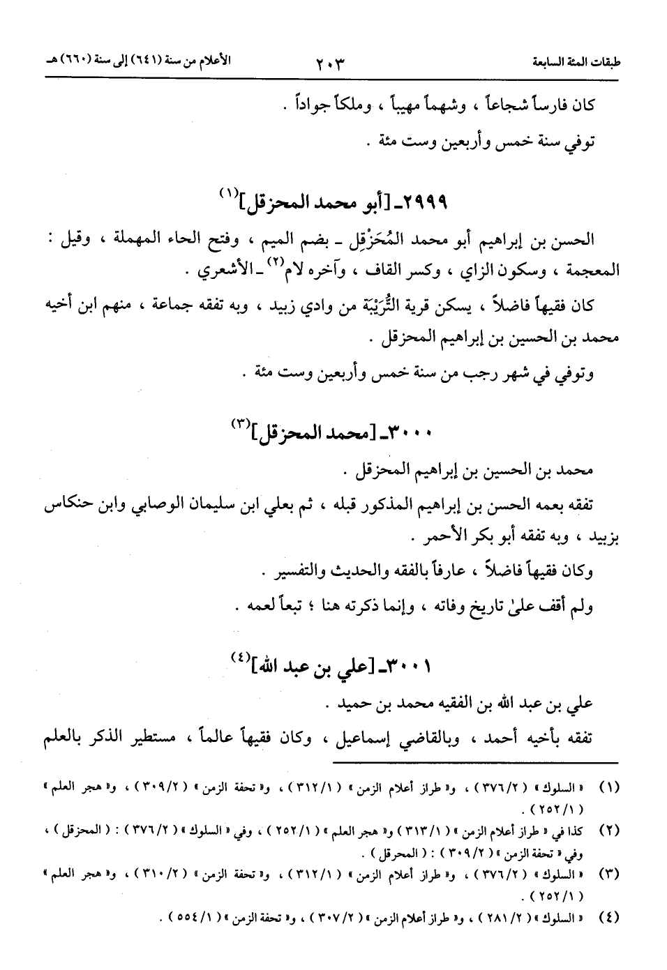 (2) كذا في «طراز أعلام الزمن» (1/ 313) و «هجر العلم» (1/ 252)، وفي «السلوك» (2/ 376): (المحزقل)، وفي «تحفة الزمن» (2/ 309): (المحرقل).