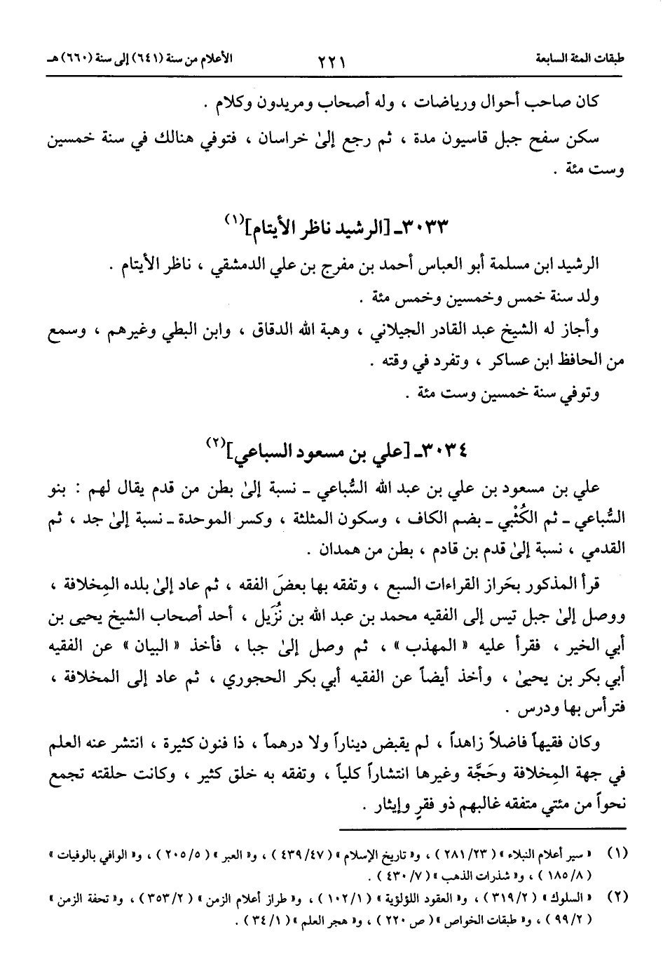 (1) «سير أعلام النبلاء» (23/ 281)، و «تاريخ الإسلام» (47/ 439)، و «العبر» (5/ 205)، و «الوافي بالوفيات» (8/ 185)، و «شذرات الذهب» (7/ 430).