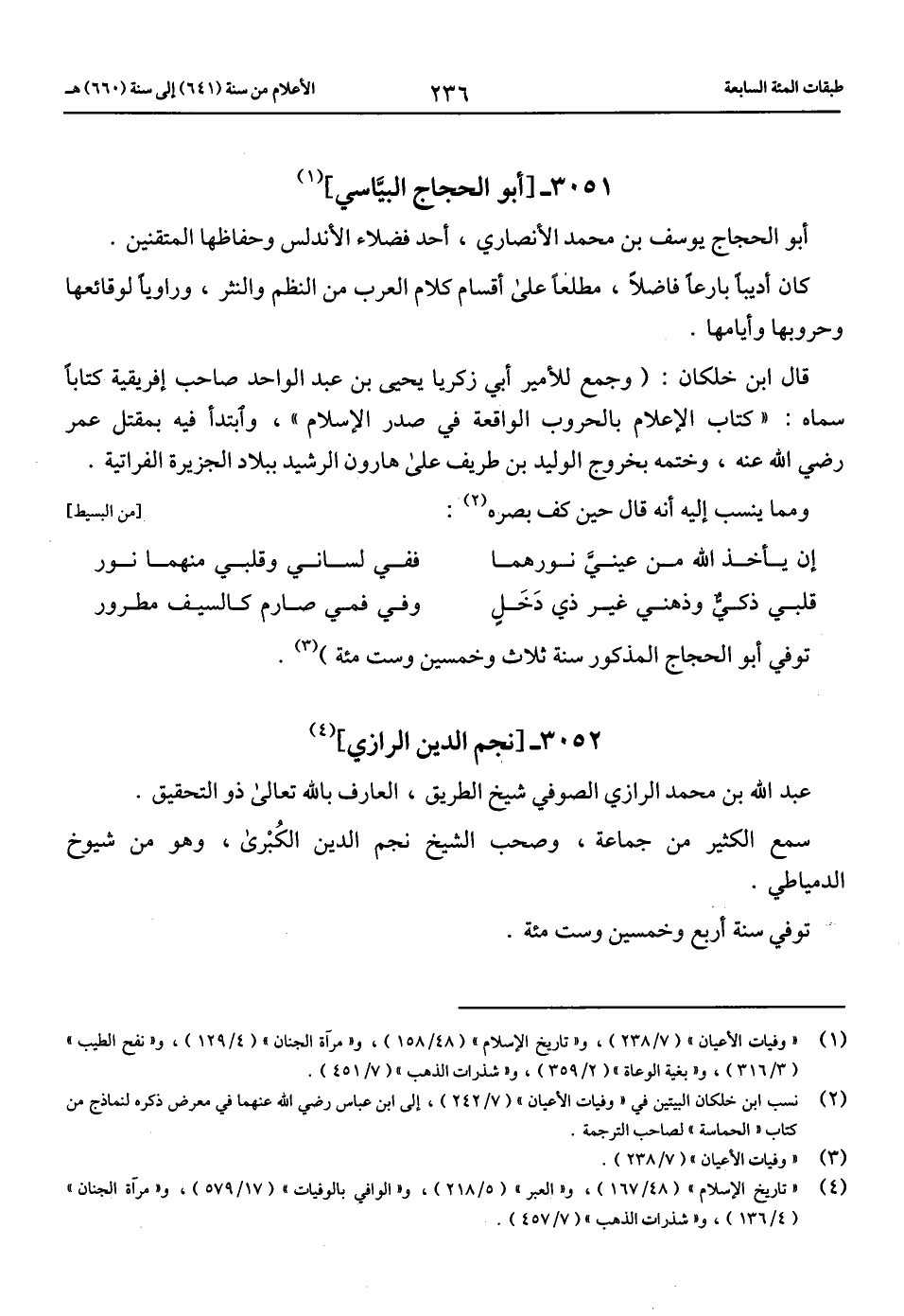 (4) «تاريخ الإسلام» (48/ 167)، و «العبر» (5/ 218)، و «الوافي بالوفيات» (17/ 579)، و «مرآة الجنان» (4/ 136)، و «شذرات الذهب» (7/ 457).