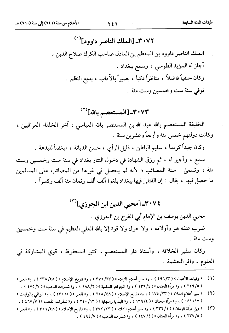 (3) «ذيل مرآة الزمان» (1/ 332)، و «سير أعلام النبلاء» (23/ 372)، و «تاريخ الإسلام» (48/ 306)، و «العبر» (5/ 237)، و «مرآة الجنان» (4/ 147)، و «شذرات الذهب» (7/ 494).