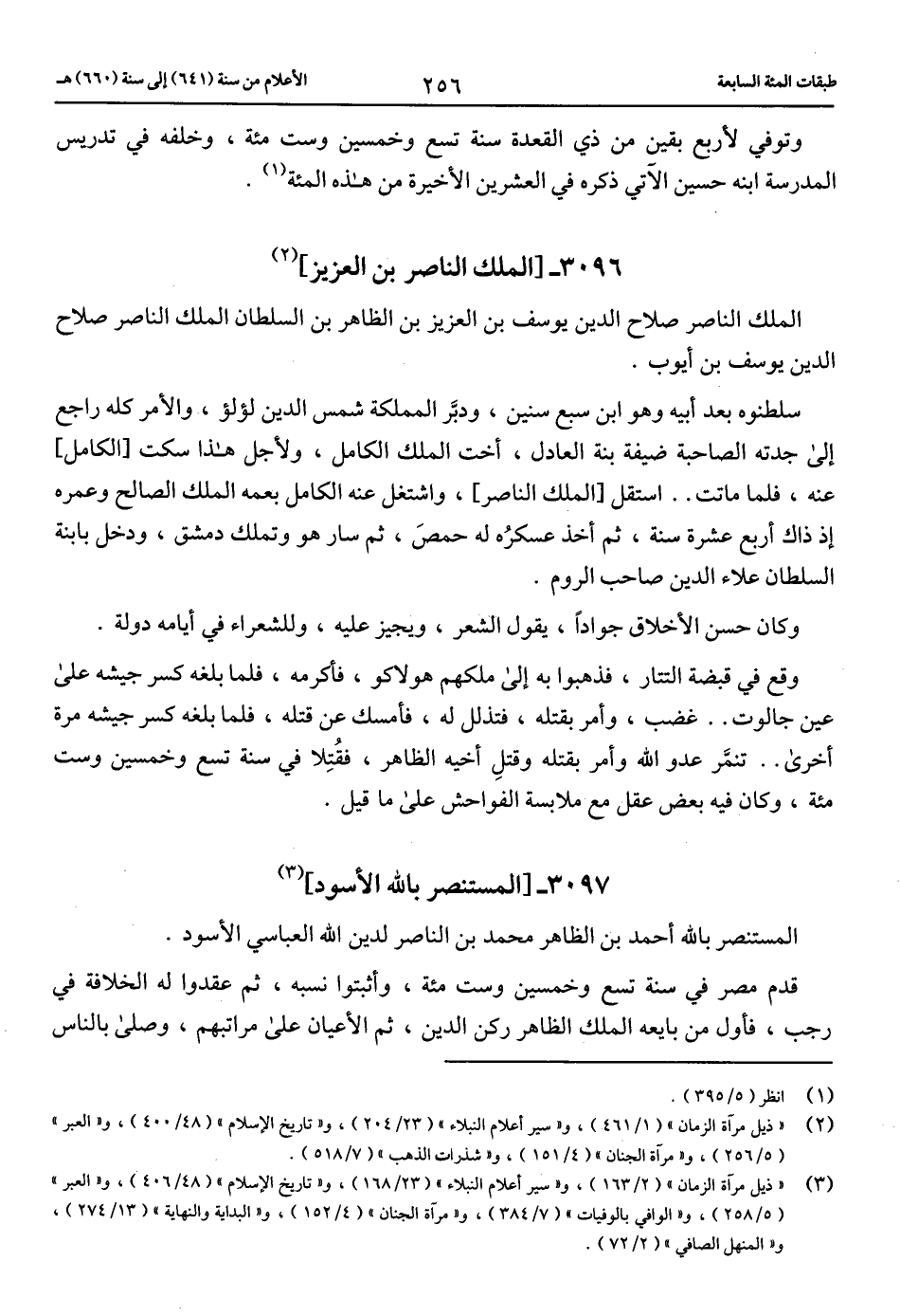 (3) «ذيل مرآة الزمان» (2/ 163)، و «سير أعلام النبلاء» (23/ 168)، و «تاريخ الإسلام» (48/ 406)، و «العبر» (5/ 258)، و «الوافي بالوفيات» (7/ 384)، و «مرآة الجنان» (4/ 152)، و «البداية والنهاية» (13/ 274)، و «المنهل الصافي» (2/ 72).