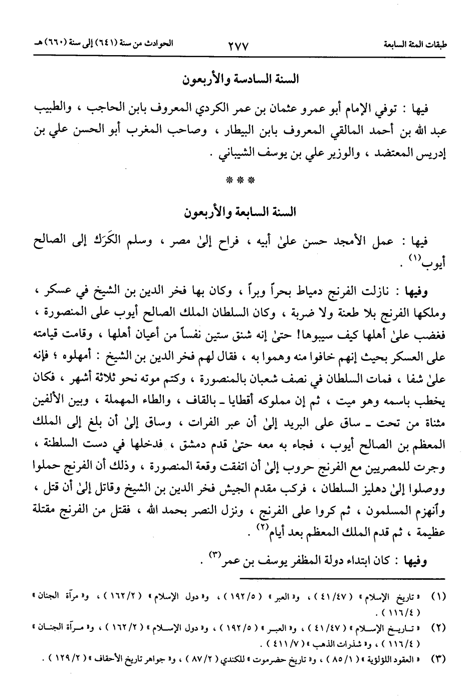 (1) «تاريخ الإسلام» (47/ 41)، و «العبر» (5/ 192)، و «دول الإسلام» (2/ 162)، و «مرآة الجنان» (4/ 116).