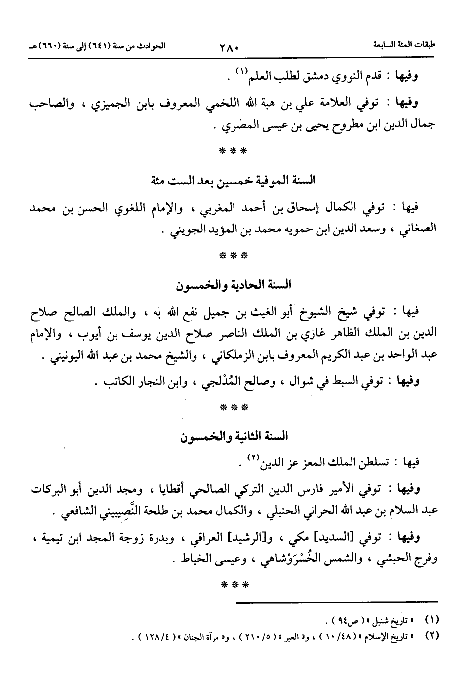 (2) «تاريخ الإسلام» (48/ 10)، و «العبر» (5/ 210)، و «مرآة الجنان» (4/ 128).