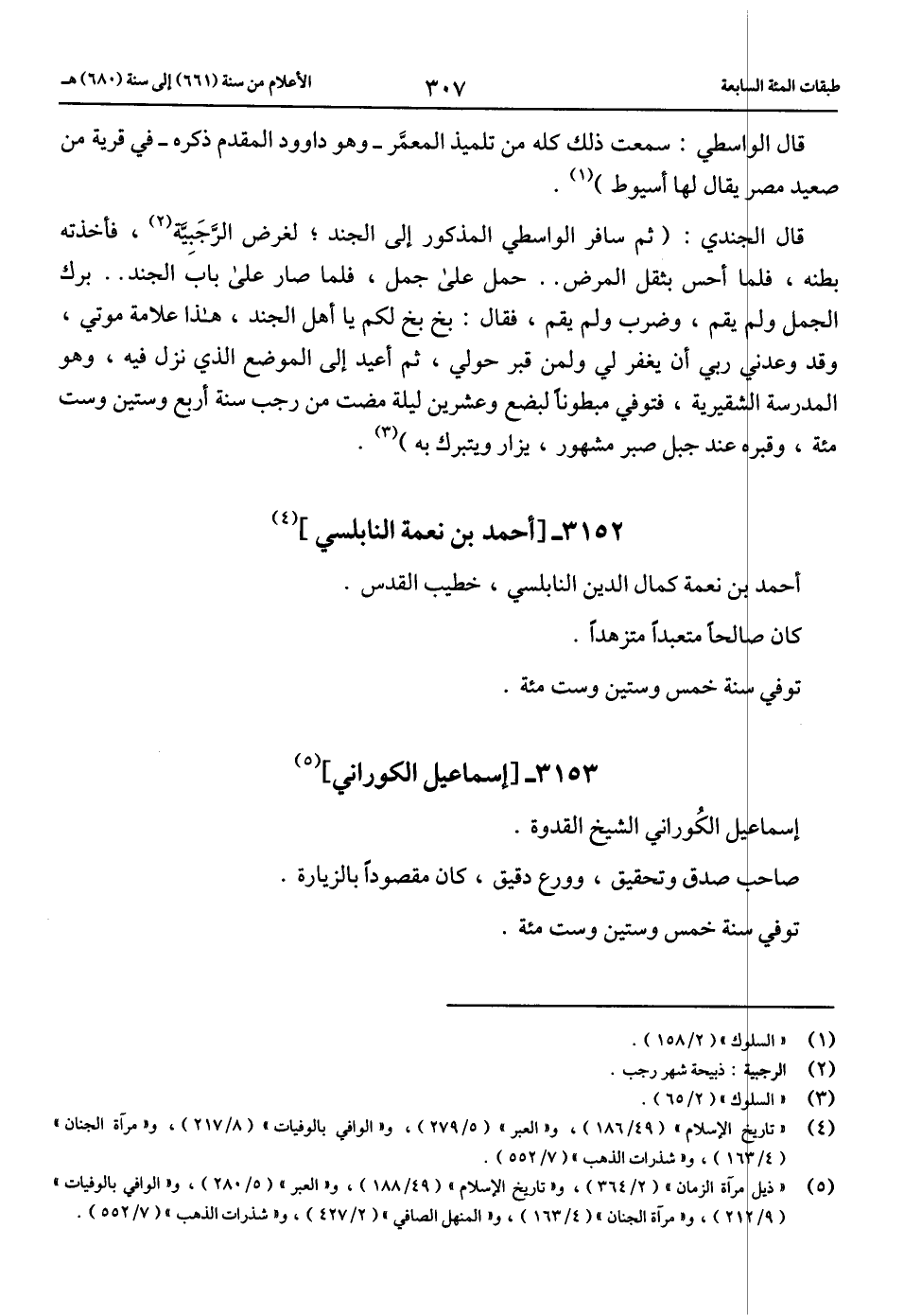 (4) «تاريخ الإسلام» (49/ 186)، و «العبر» (5/ 279)، و «الوافي بالوفيات» (8/ 217)، و «مرآة الجنان» (4/ 163)، و «شذرات الذهب» (7/ 552).