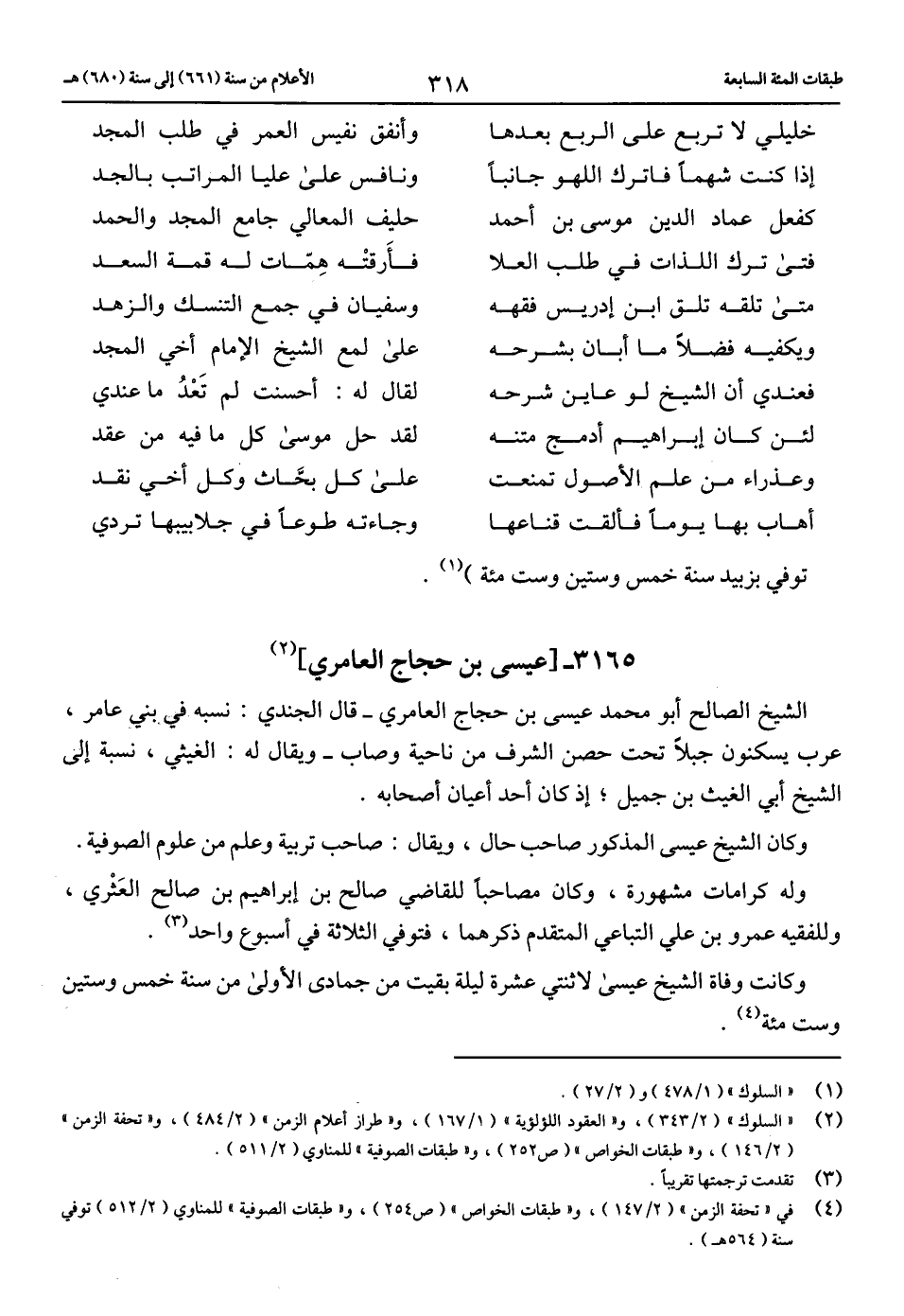 (2) «السلوك» (2/ 343)، و «العقود اللؤلؤية» (1/ 167)، و «طراز أعلام الزمن» (2/ 484)، و «تحفة الزمن» (2/ 146)، و «طبقات الخواص» (ص 252)، و «طبقات الصوفية» للمناوي (2/ 511).