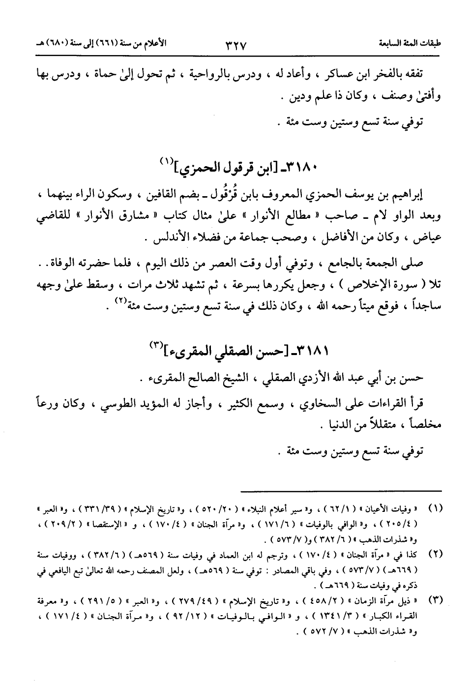 (3) «ذيل مرآة الزمان» (2/ 458)، و «تاريخ الإسلام» (49/ 279)، و «العبر» (5/ 291)، و «معرفة القراء الكبار» (3/ 1341)، و «الوافي بالوفيات» (12/ 92)، و «مرآة الجنان» (4/ 171)، و «شذرات الذهب» (7/ 572).