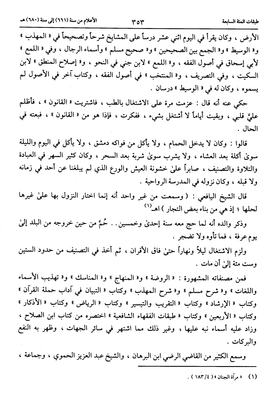 ولزم الاشتغال ليلا ونهارا حتى فاق الأقران، ثم أخذ في التصنيف من حدود الستين وست مائة إلى أن مات.