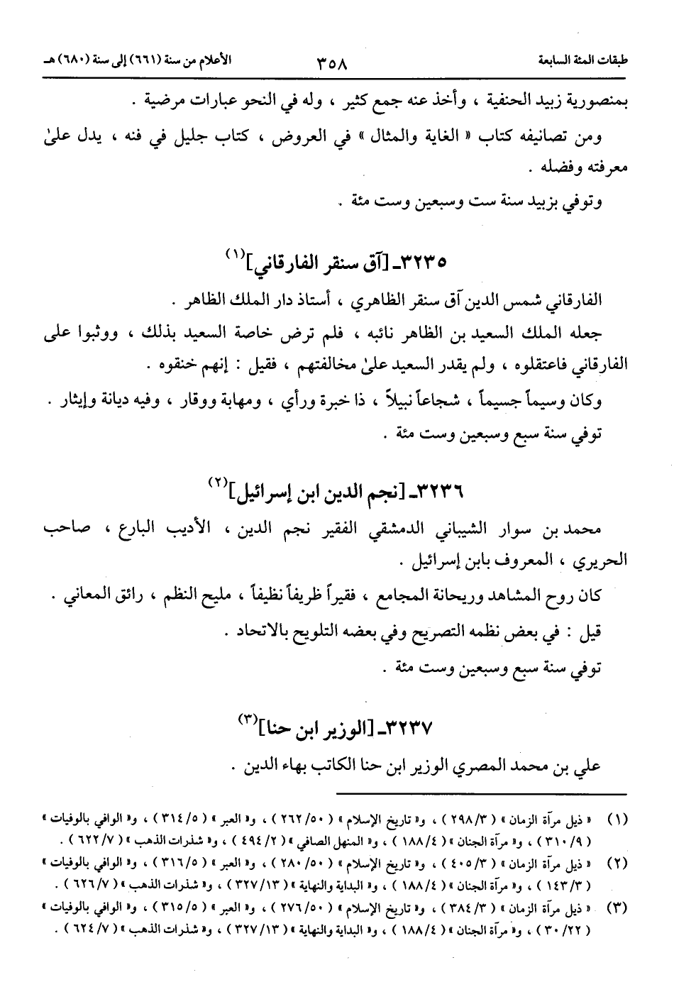 (2) «ذيل مرآة الزمان» (3/ 405)، و «تاريخ الإسلام» (50/ 280)، و «العبر» (5/ 316)، و «الوافي بالوفيات» (3/ 143)، و «مرآة الجنان» (4/ 188)، و «البداية والنهاية» (13/ 327)، و «شذرات الذهب» (7/ 626).