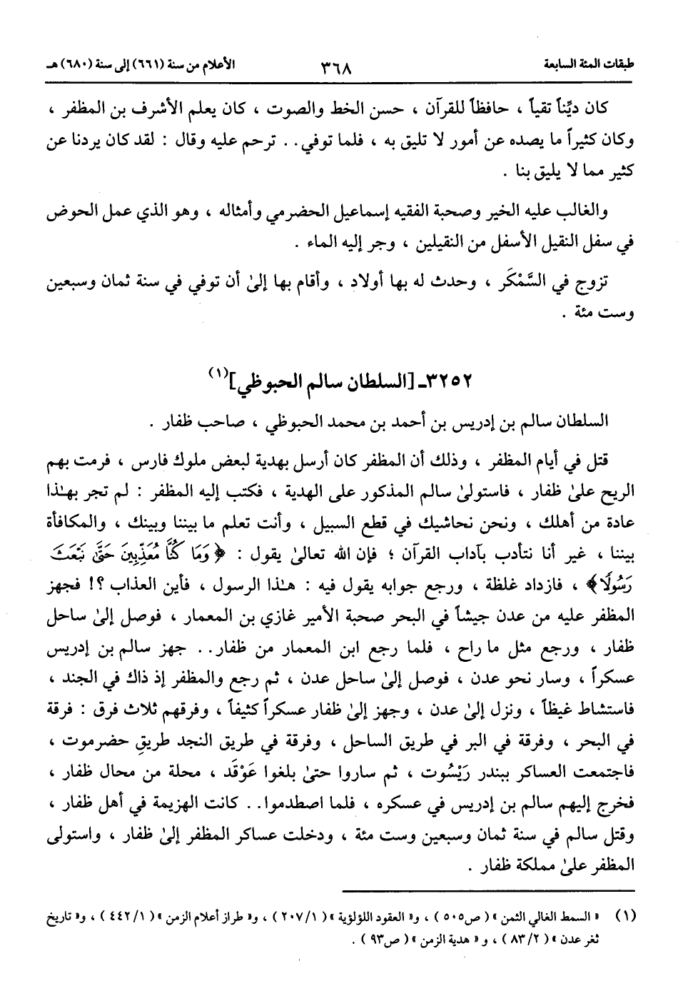 (1) «السمط الغالي الثمن» (ص 505)، و «العقود اللؤلؤية» (1/ 207)، و «طراز أعلام الزمن» (1/ 442)، و «تاريخ ثغر عدن» (2/ 83)، و «هدية الزمن» (ص 93).