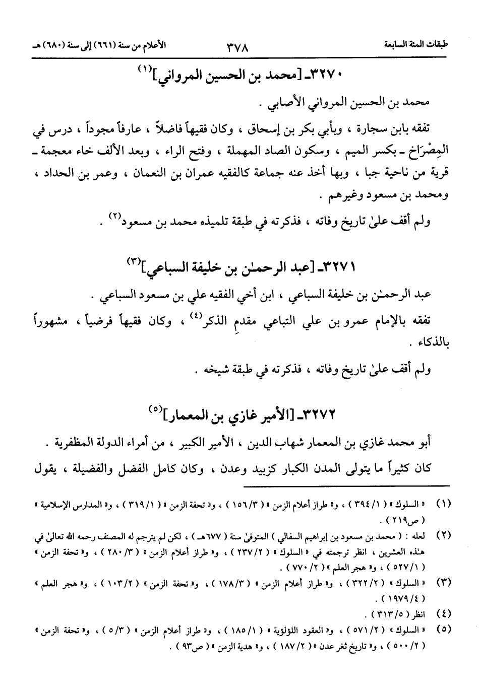 (5) «السلوك» (2/ 571)، و «العقود اللؤلؤية» (1/ 185)، و «طراز أعلام الزمن» (3/ 5)، و «تحفة الزمن» (2/ 500)، و «تاريخ ثغر عدن» (2/ 187)، و «هدية الزمن» (ص 93).