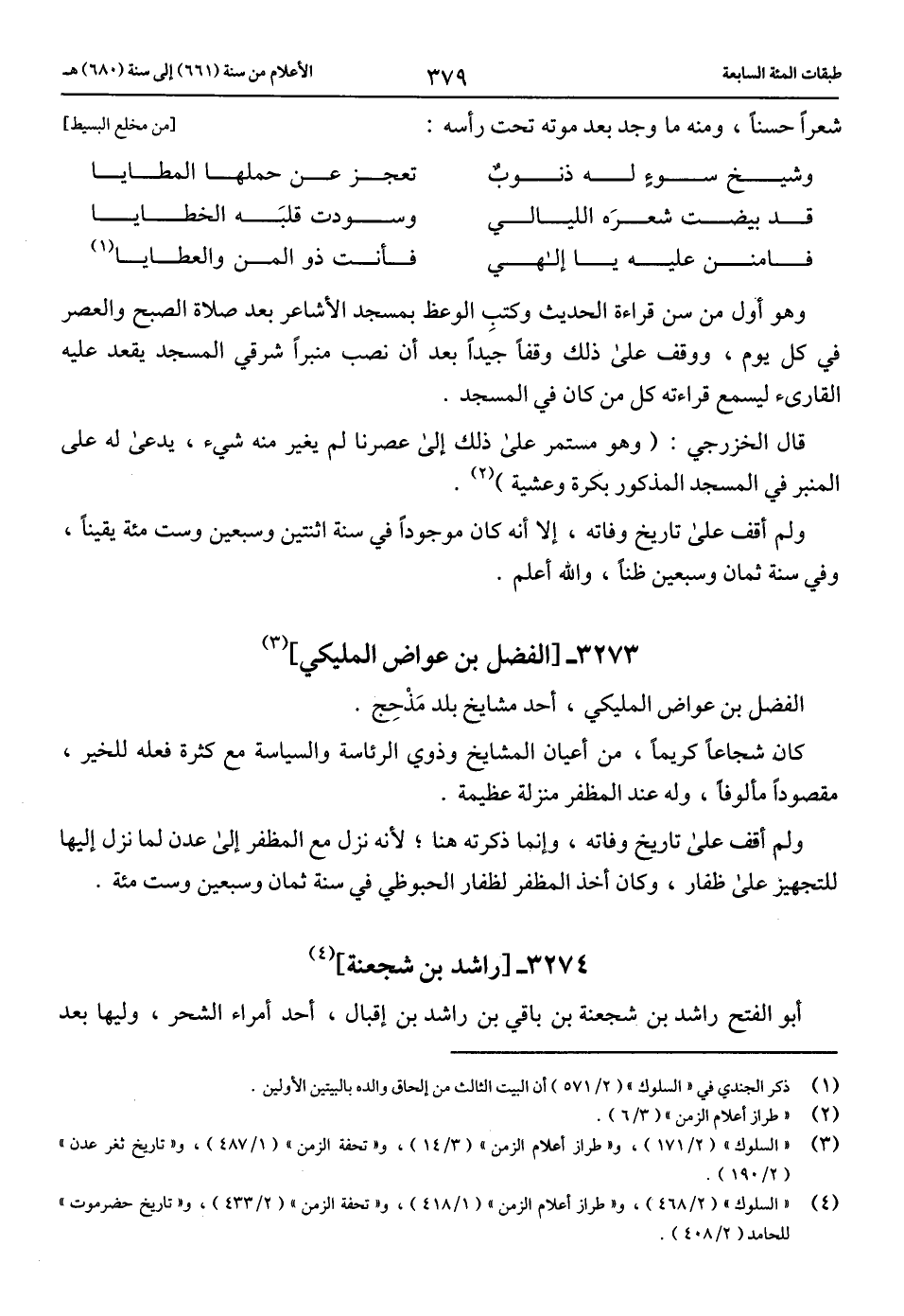 (4) «السلوك» (2/ 468)، و «طراز أعلام الزمن» (1/ 418)، و «تحفة الزمن» (2/ 433)، و «تاريخ حضرموت» للحامد (2/ 408).