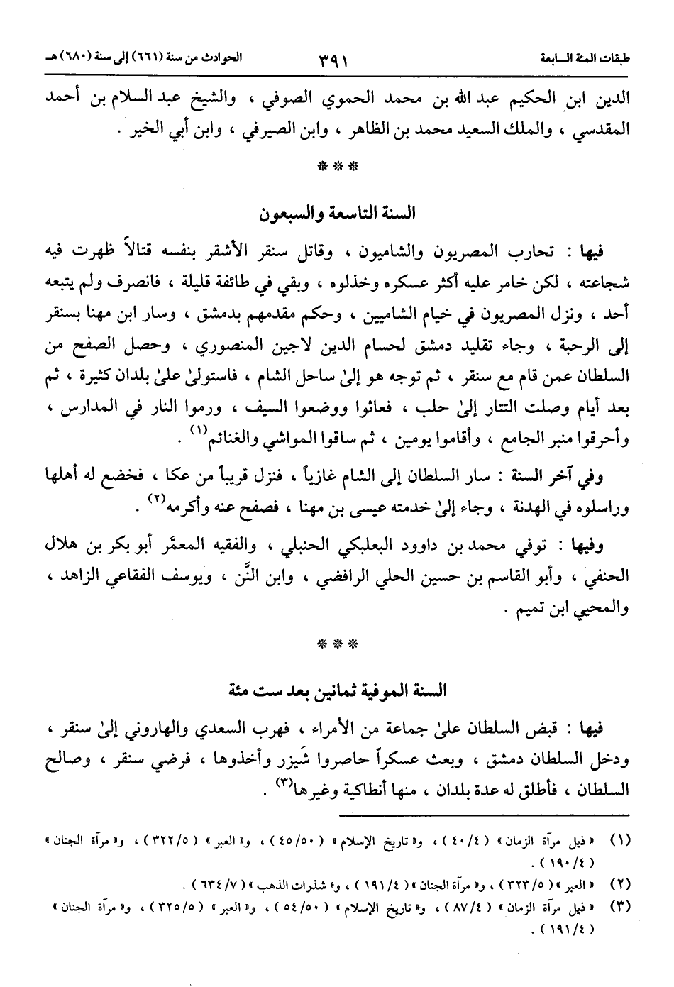 (3) «ذيل مرآة الزمان» (4/ 87)، و «تاريخ الإسلام» (50/ 54)، و «العبر» (5/ 325)، و «مرآة الجنان» (4/ 191).