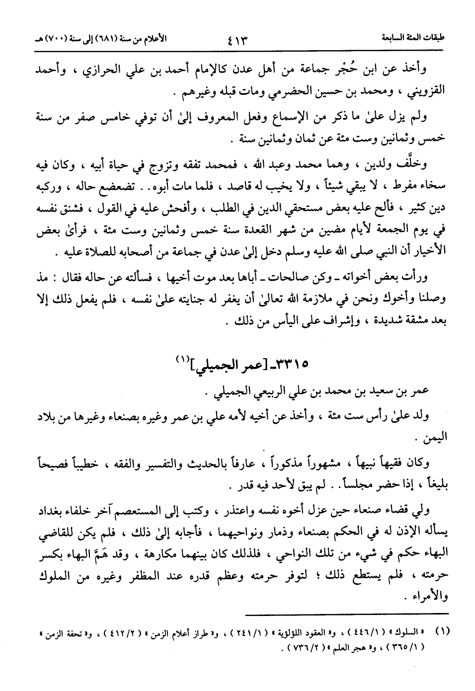 (1) «السلوك» (1/ 446)، و «العقود اللؤلؤية» (1/ 241)، و «طراز أعلام الزمن» (2/ 412)، و «تحفة الزمن» (1/ 365)، و «هجر العلم» (2/ 736).