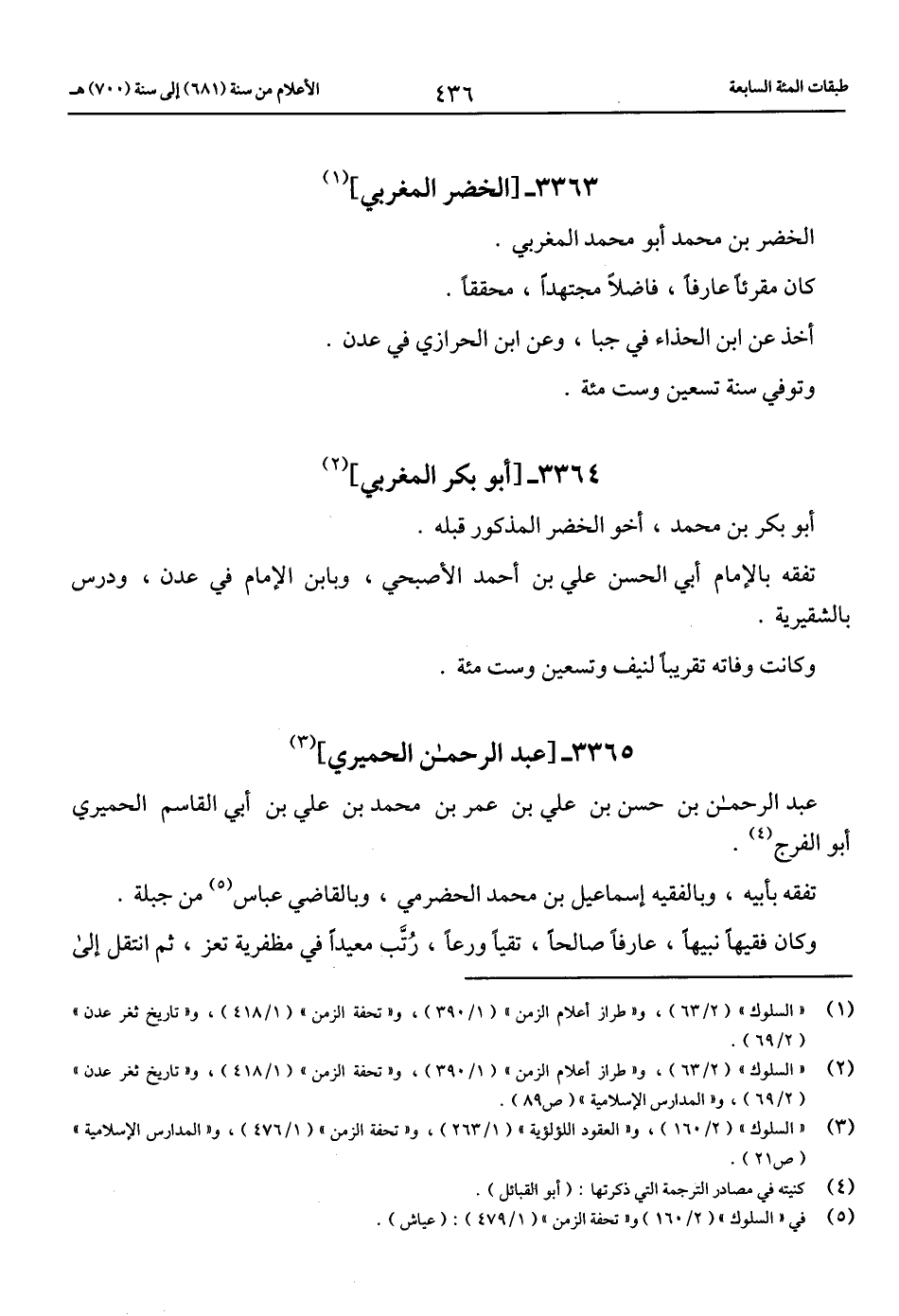 (1) «السلوك» (2/ 63)، و «طراز أعلام الزمن» (1/ 390)، و «تحفة الزمن» (1/ 418)، و «تاريخ ثغر عدن» (2/ 69).