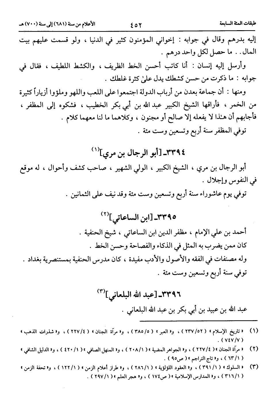 (1) «تاريخ الإسلام» (52/ 237)، و «العبر» (5/ 385)، و «مرآة الجنان» (4/ 227)، و «شذرات الذهب» (7/ 747).
