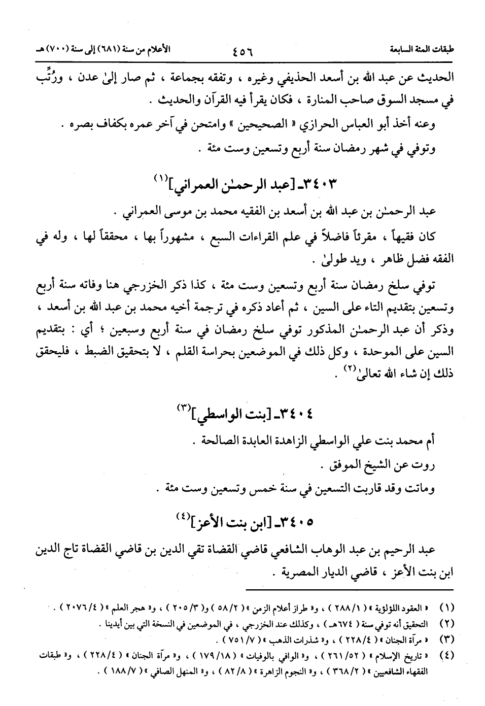(4) «تاريخ الإسلام» (52/ 261)، و «الوافي بالوفيات» (18/ 179)، و «مرآة الجنان» (4/ 228)، و «طبقات الفقهاء الشافعيين» (2/ 368)، و «النجوم الزاهرة» (8/ 82)، و «المنهل الصافي» (7/ 188).