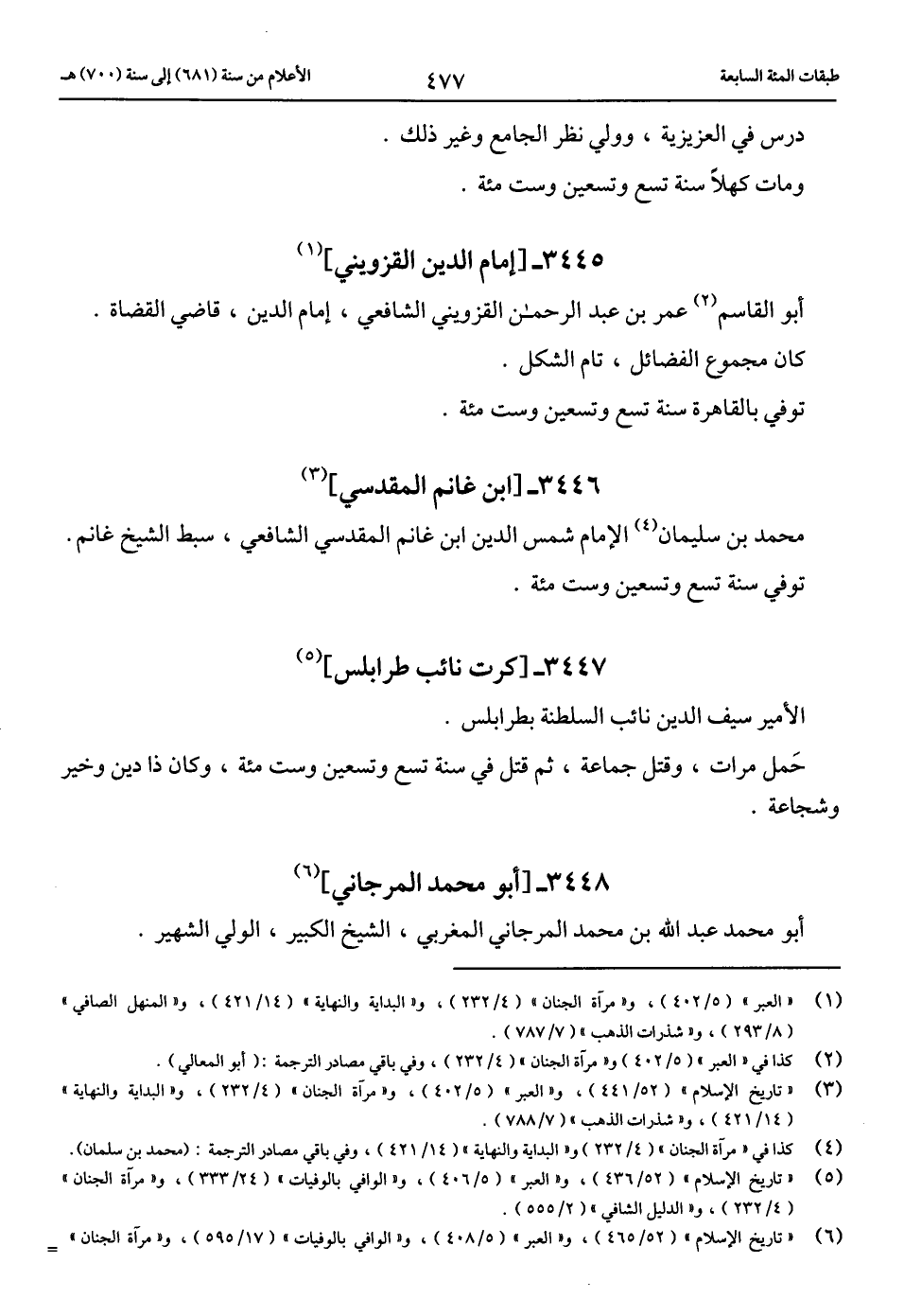 (6) «تاريخ الإسلام» (52/ 465)، و «العبر» (5/ 408)، و «الوافي بالوفيات» (17/ 595)، و «مرآة الجنان» -