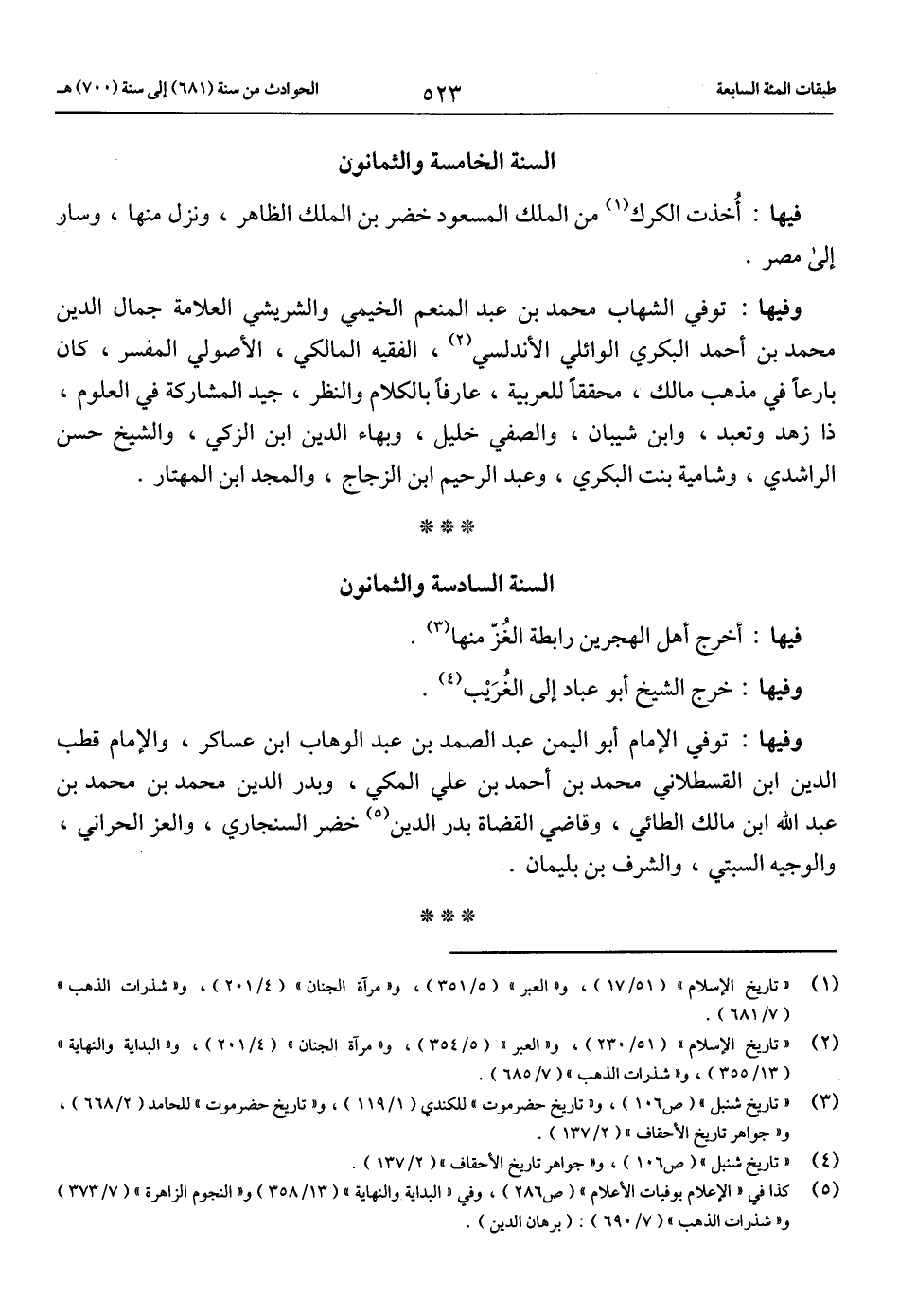 (1) «تاريخ الإسلام» (51/ 17)، و «العبر» (5/ 351)، و «مرآة الجنان» (4/ 201)، و «شذرات الذهب» (7/ 681).
